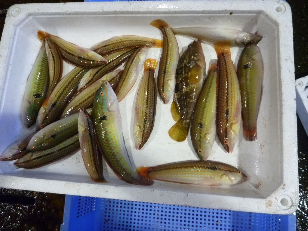 主なものは、マダイ、チヌ、ゲタ、メイタ、キス、コチゴ、メバル類、オコゼ、