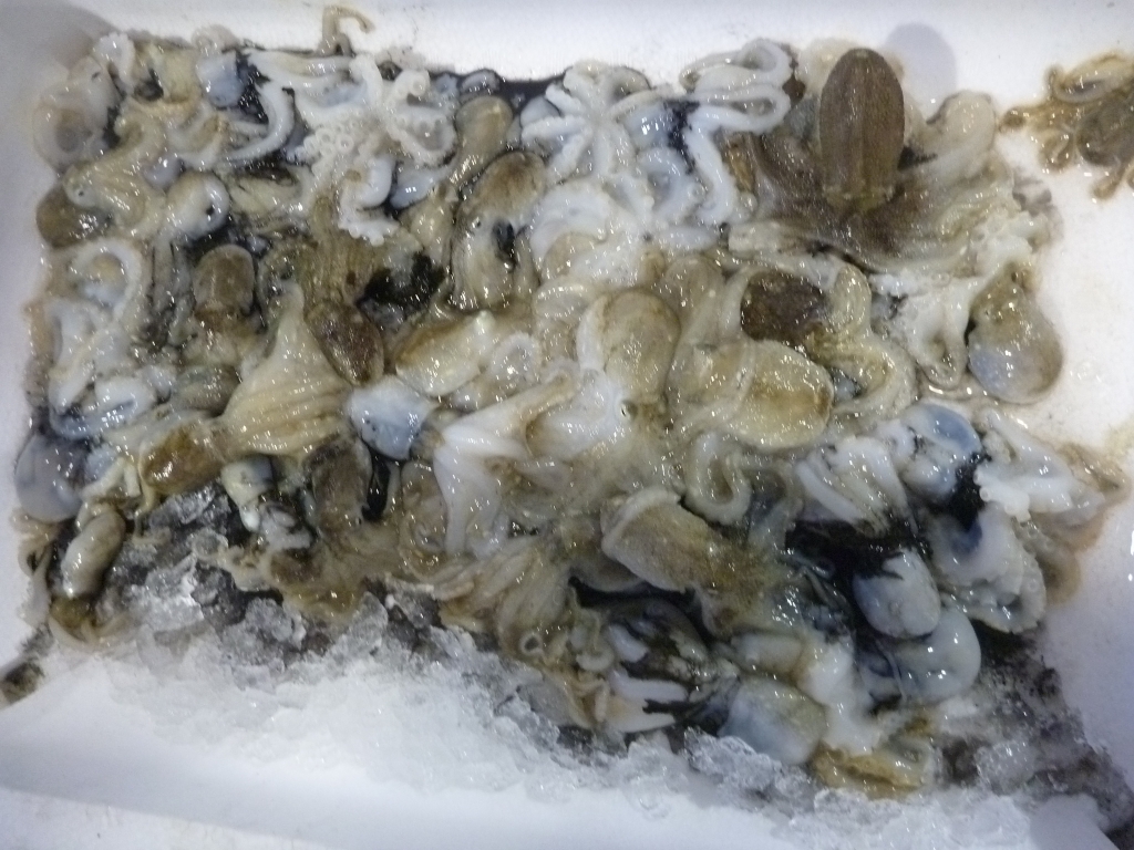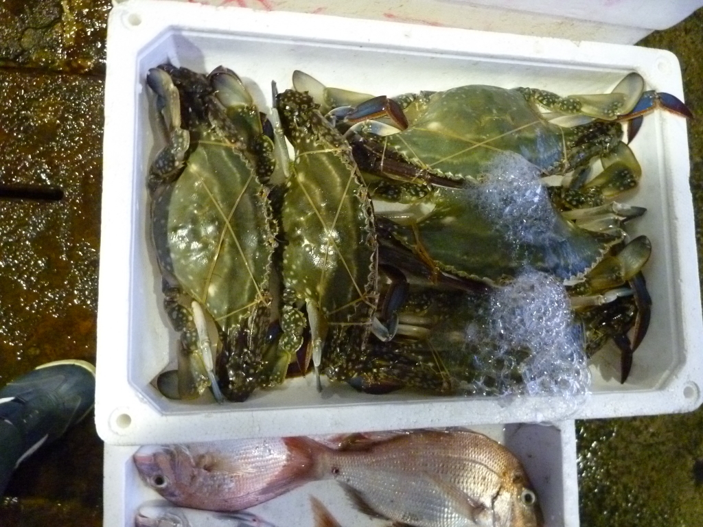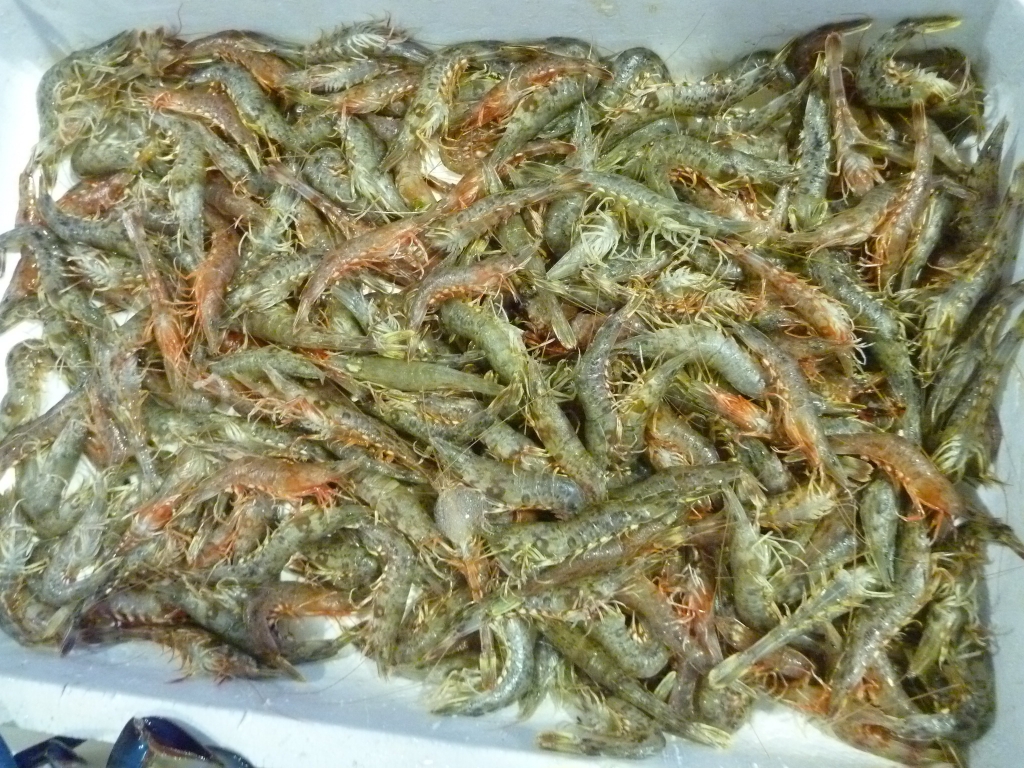 マダコ、イイダコ、ベイカ、小エビ、クルマエビ、モエビ、ワタリガニ、