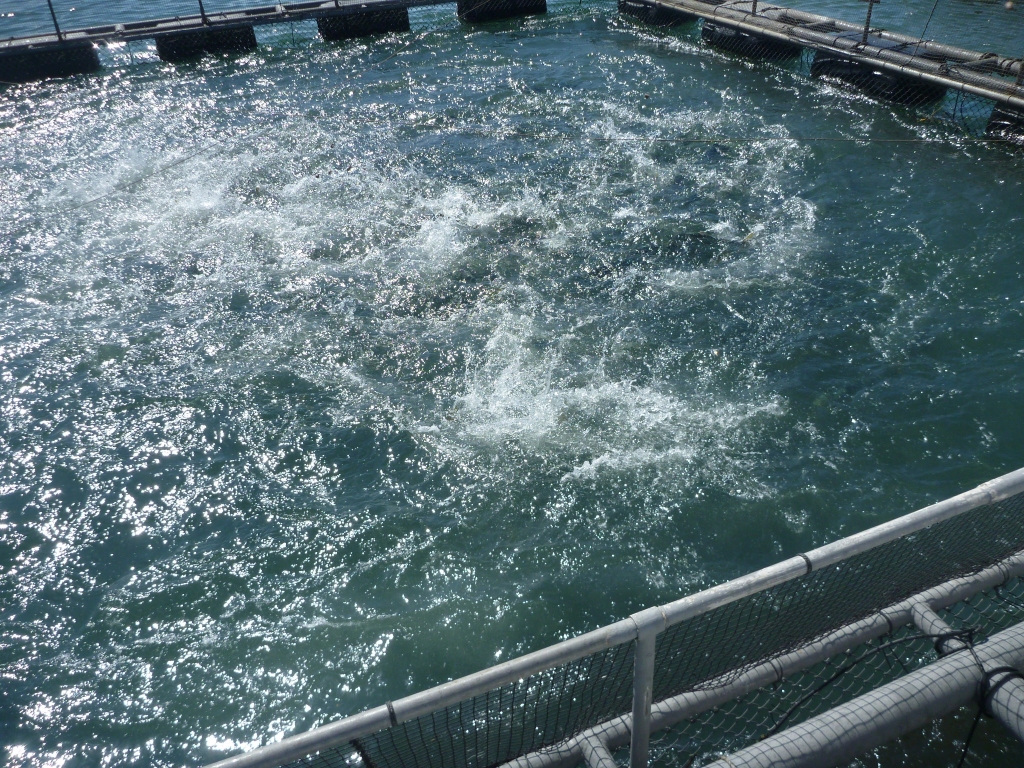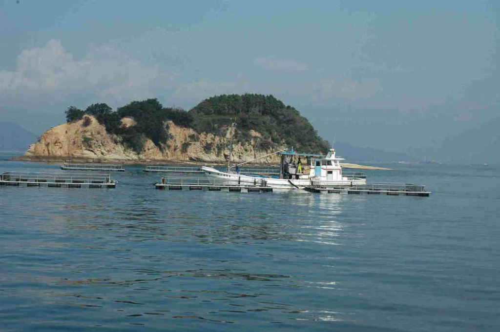 バイヤーは、午前中は、オリーブハマチの養殖現場を見学し、