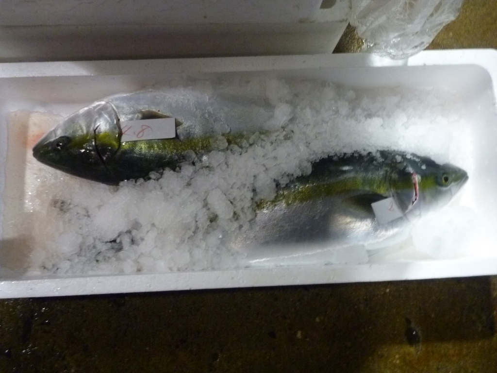 今朝の市場には、荒天のため枡網の漁獲物しかありません。
