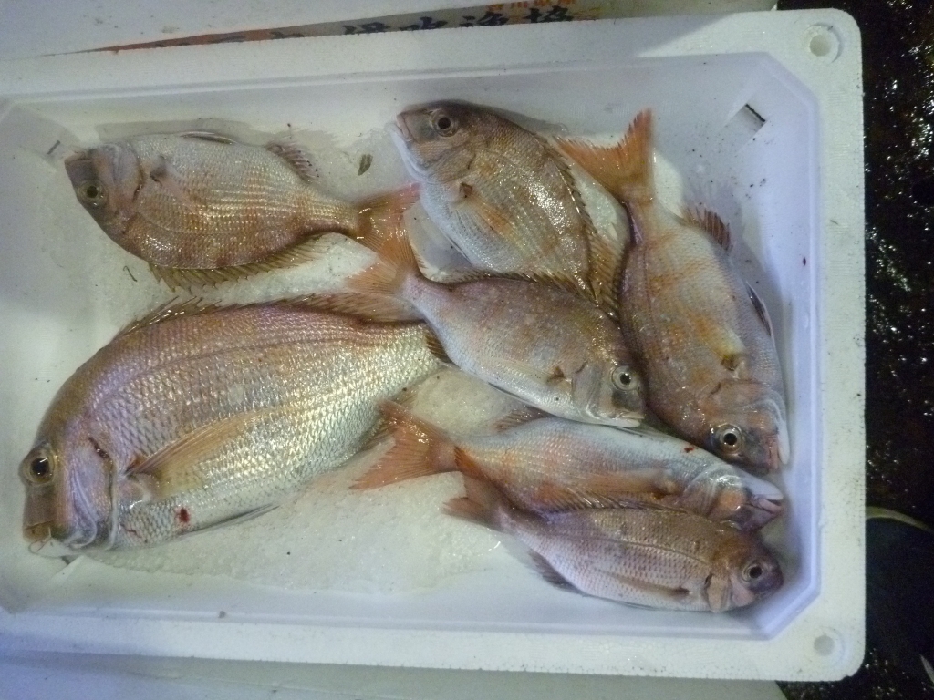 主なものは、マダイ、チヌ、ゲタ、メイタ、キス、コチゴ、シマゲタ、ヒラメ、