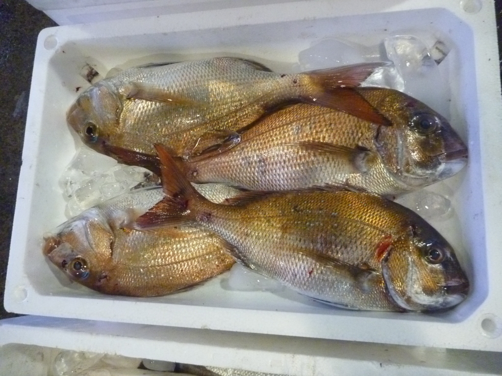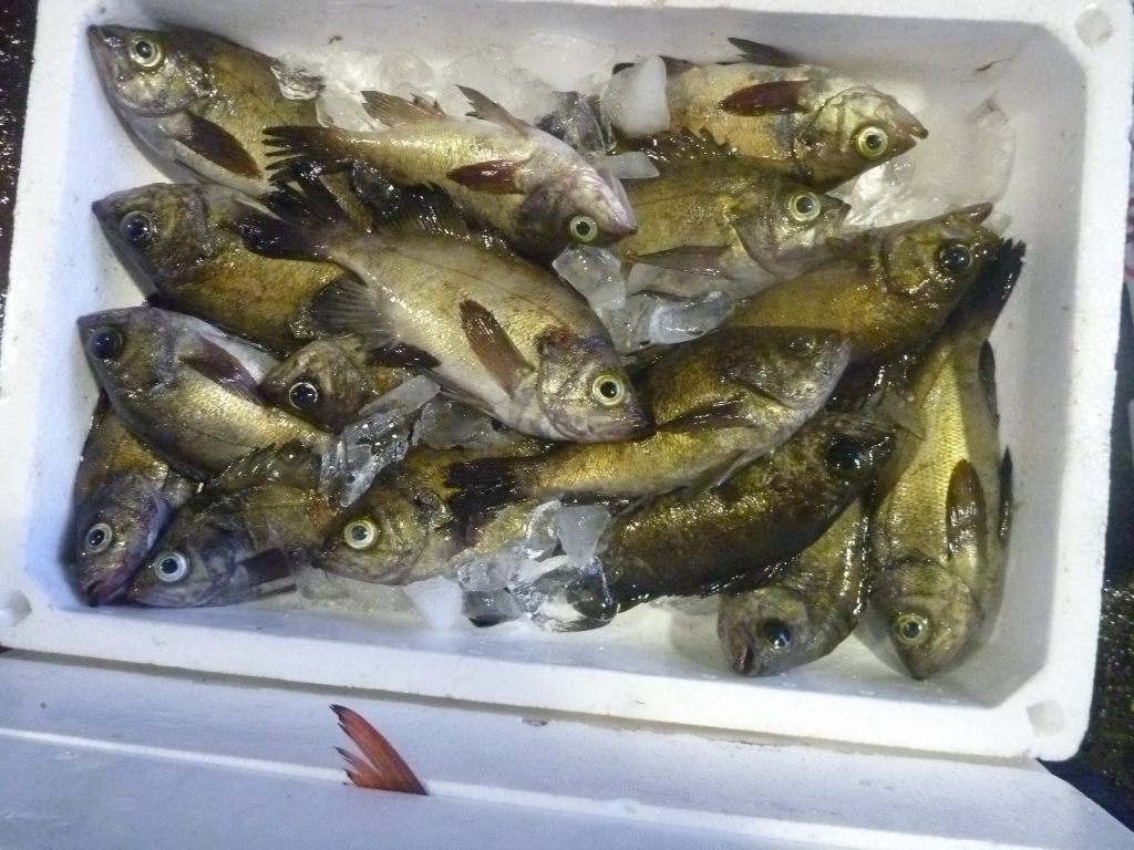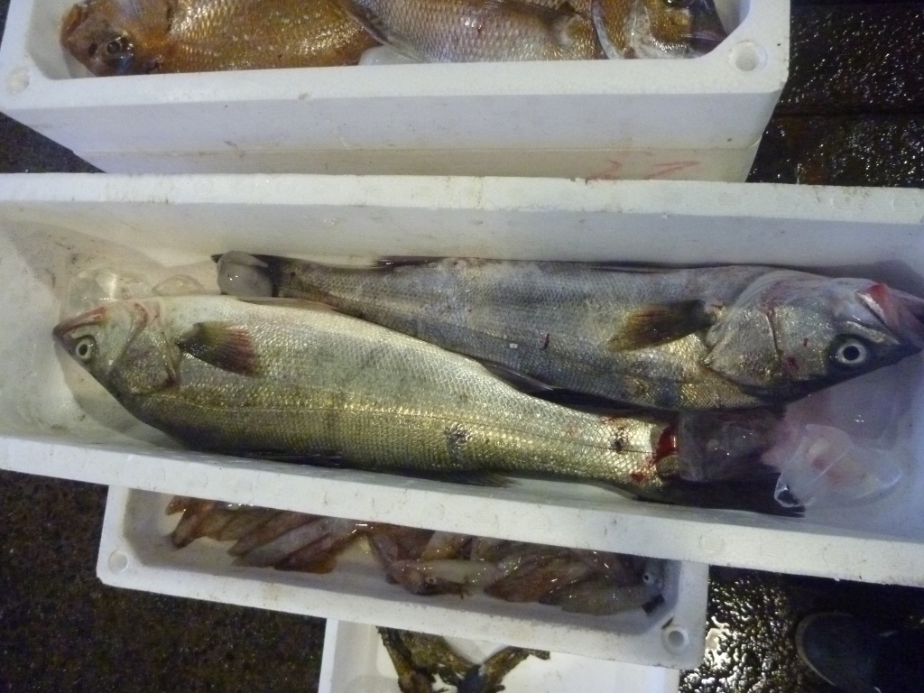 主なものは、サワラ、マダイ、チヌ、ヒラメ、ハネ、ゲタ、メイタ、メバル類、コチゴ、