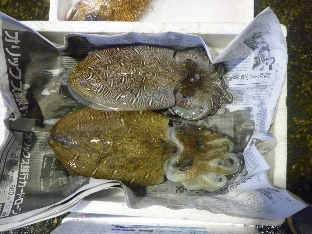 オコゼ、キス、アナゴ、ハリイカ、ベイカ、モンゴウイカ、小エビ、クルマエビ、