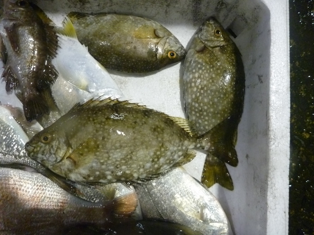 主なものは、マダイ、チヌ、ヒラメ、ゲタ、メイタ、メバル類、