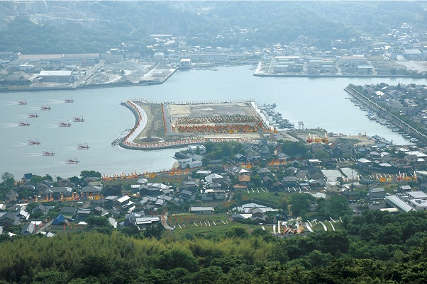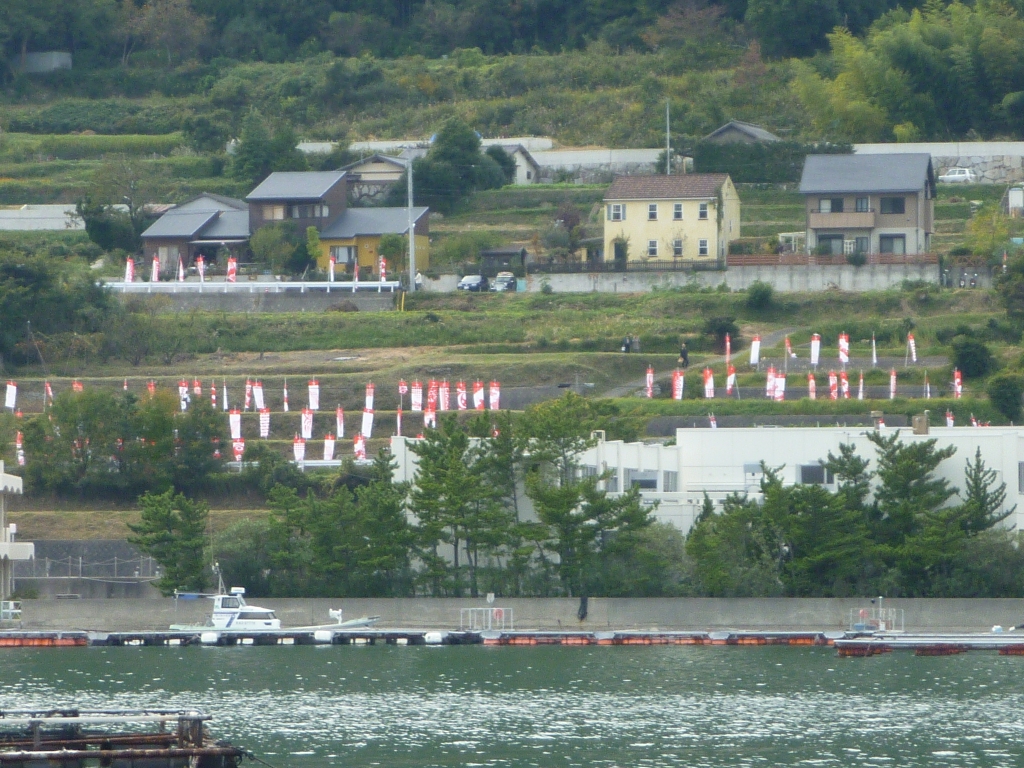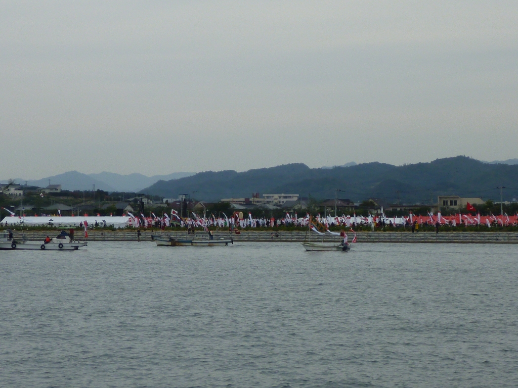 壇ノ浦の海岸一帯や海上になった石場港は、紅白の幟端に埋め尽くされていました。