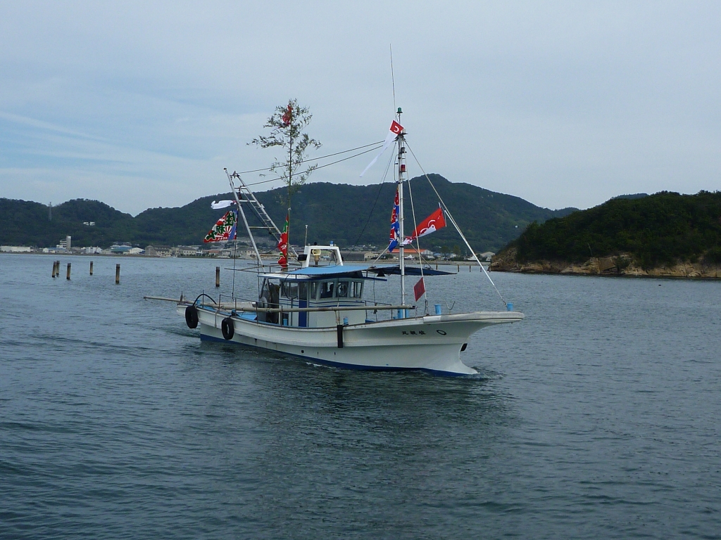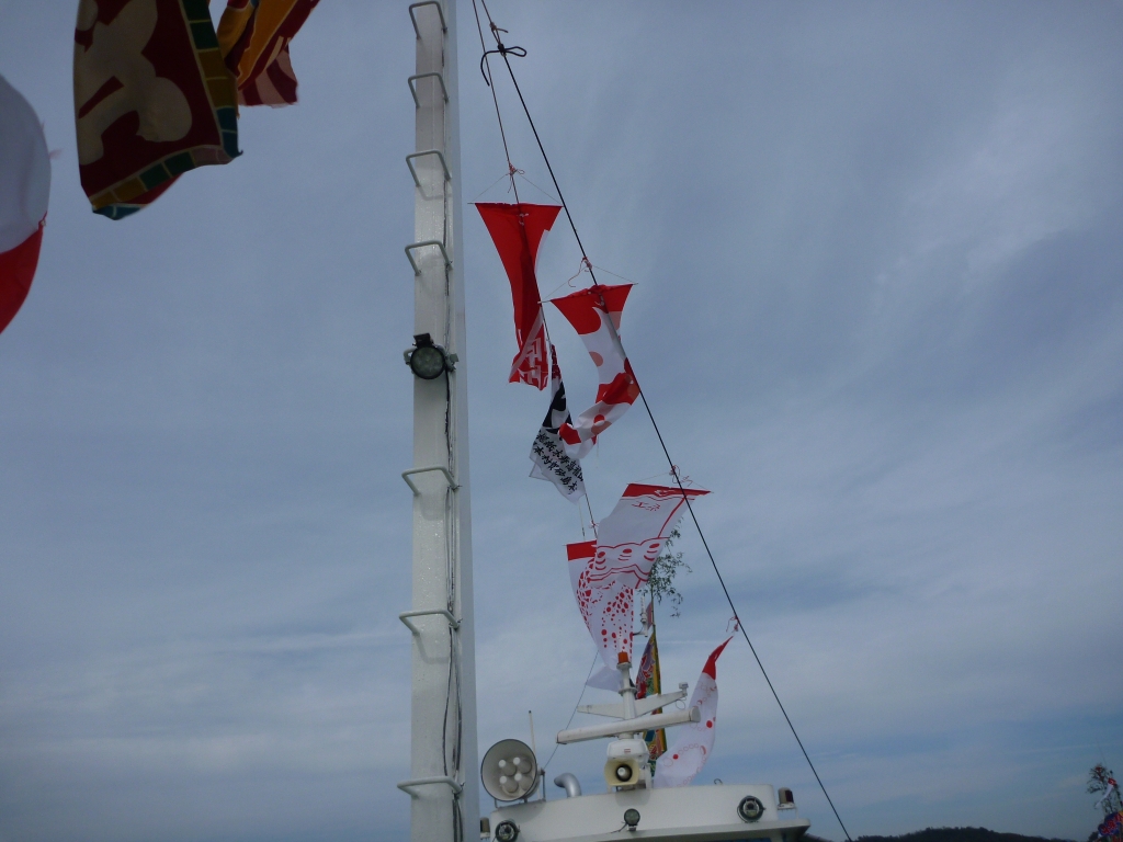 漁船は、平家の水軍意実たてられていますので赤の流旗を掲げていました。