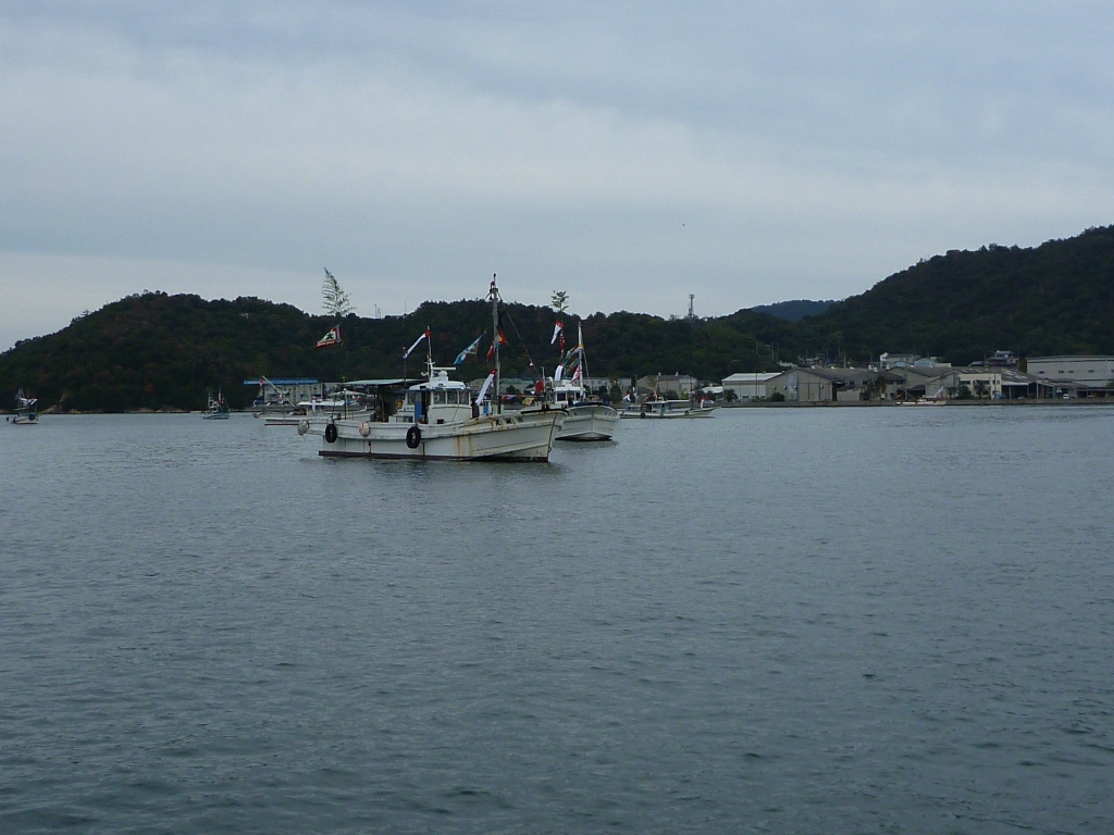 漁船は、こまし網や底引き網の漁船がが中心で、中には小型の漁船も混じっていました。