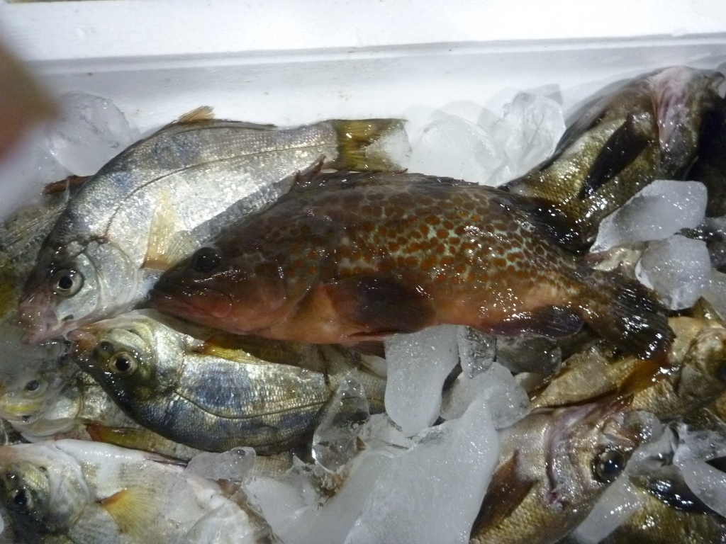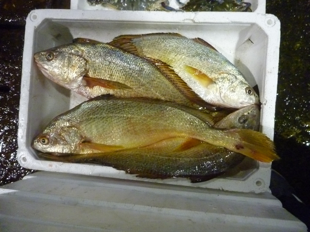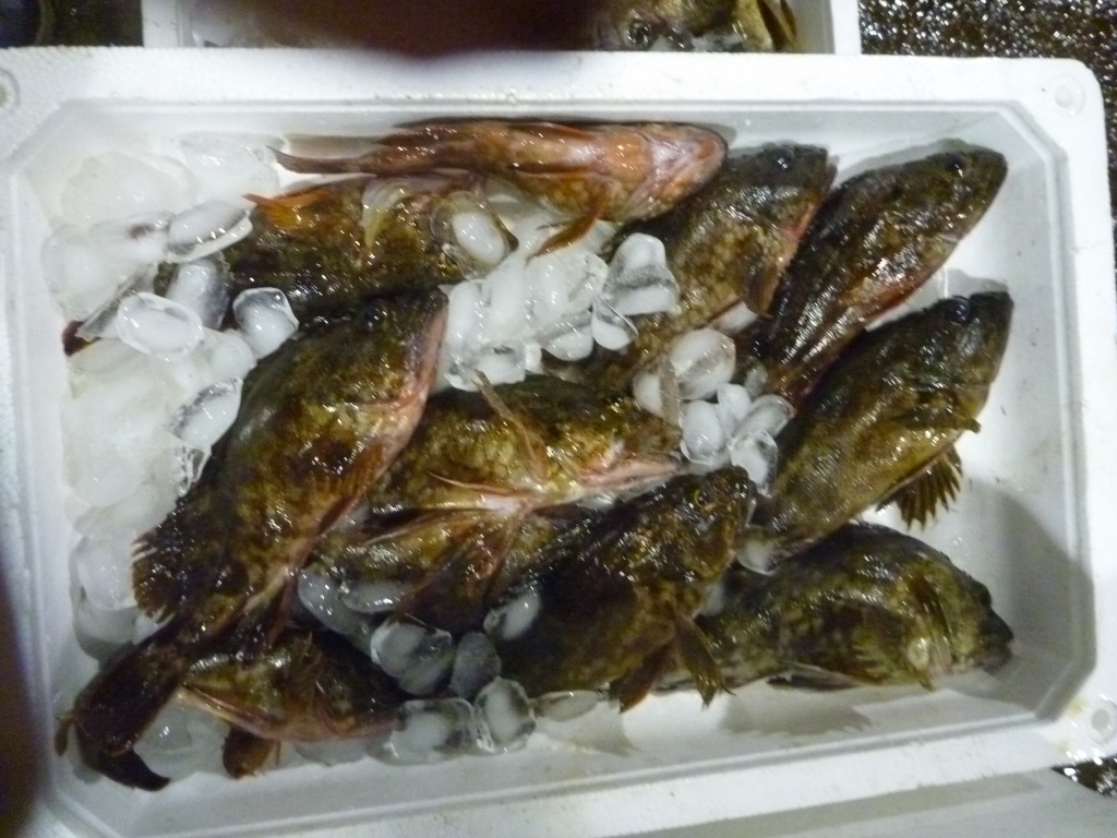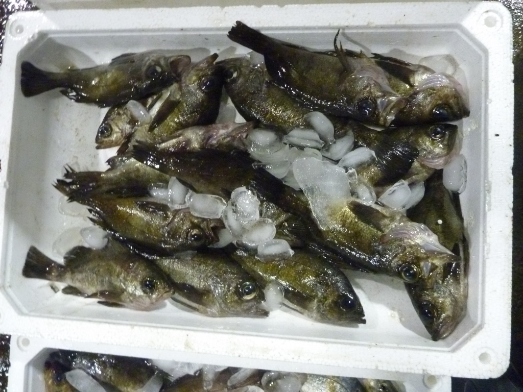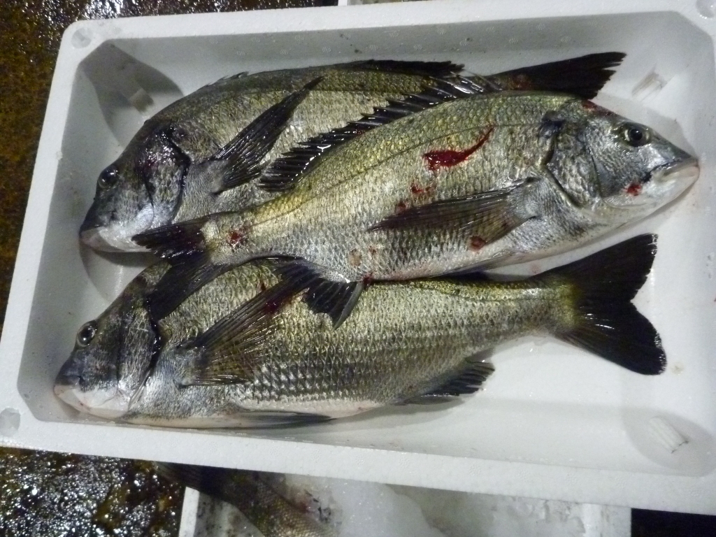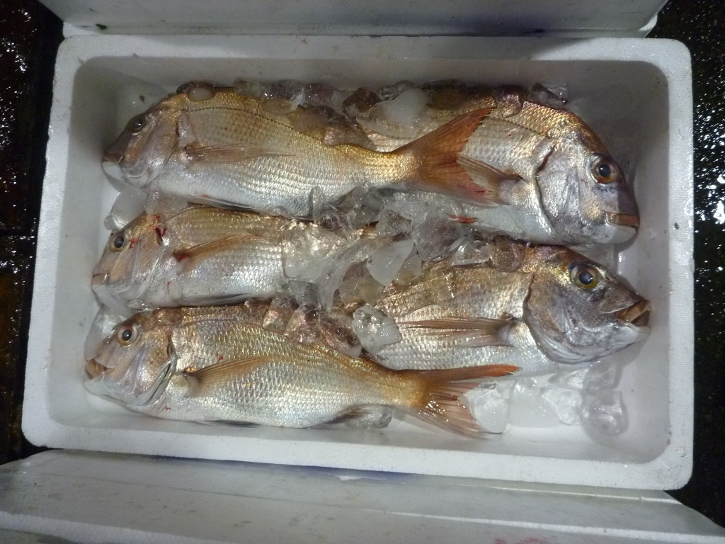 主なものは、マダイ、チヌ、ハネ、ゲタ、メイタ、マルハギ、小アジ、小フグ、