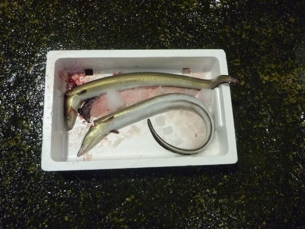 アナゴ、ハモ、イイダコ、ハリイカ、ミズイカ、小エビ、ワタリガニ、