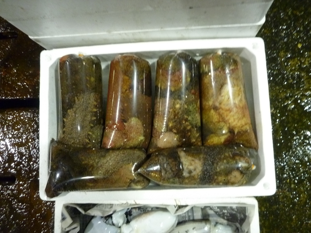 ベイカ、小エビ、ワタリガニ、タチガイ、ニシ貝、ナマコ等です。