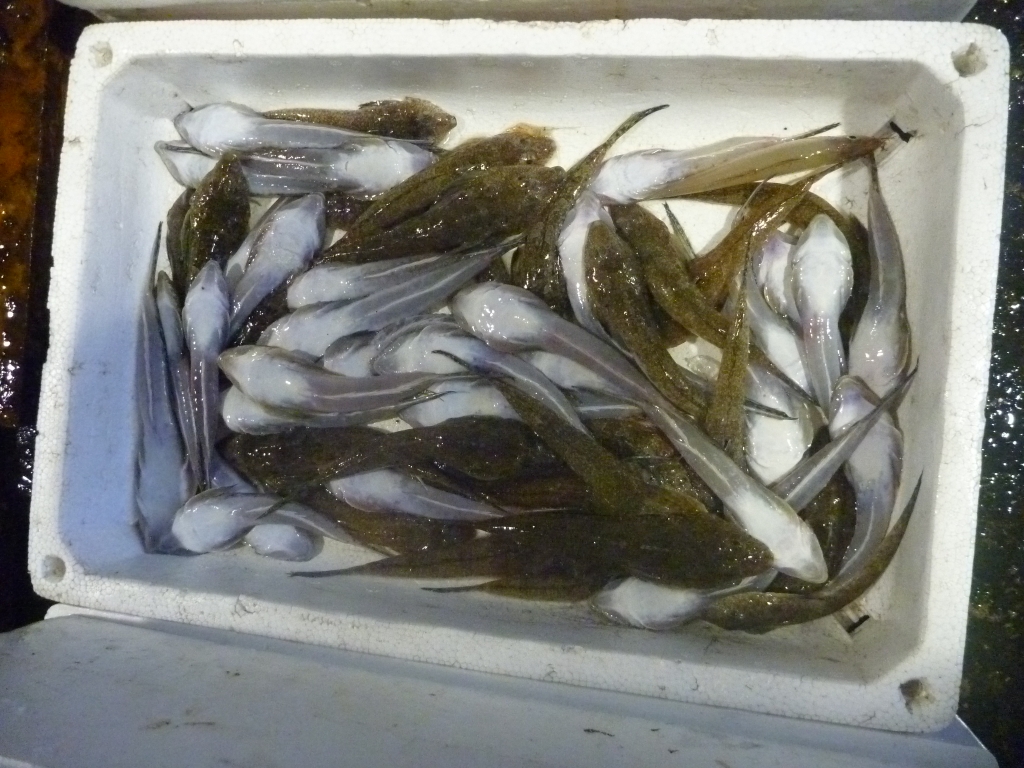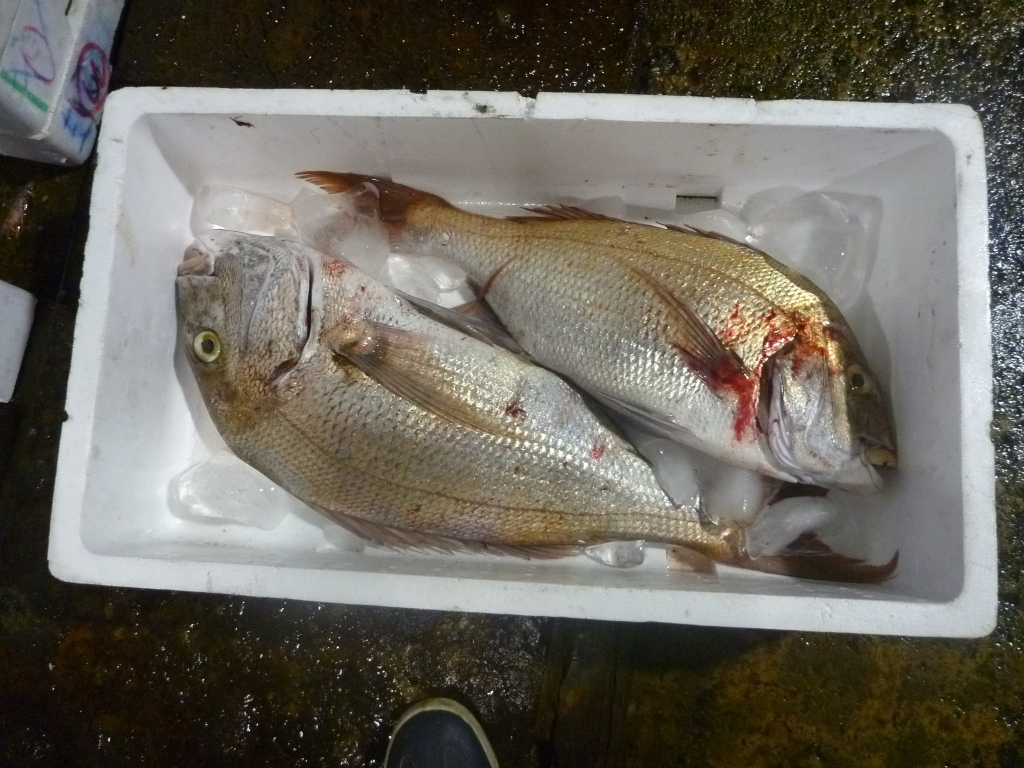 主なものは、マダイ、チヌ、メイタ、ゲタ、マナガツオ、小フグ、メバル類、