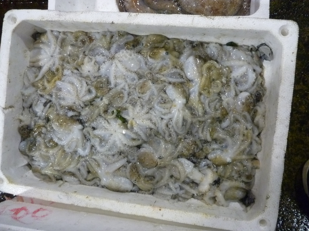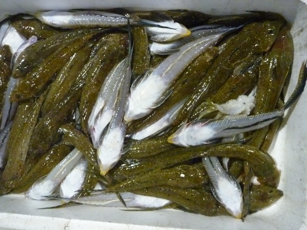 コチゴ、小フグ、シマゲタ、ニベ、アナゴ、ハモ、マダコ、イイダコ、小イカ、