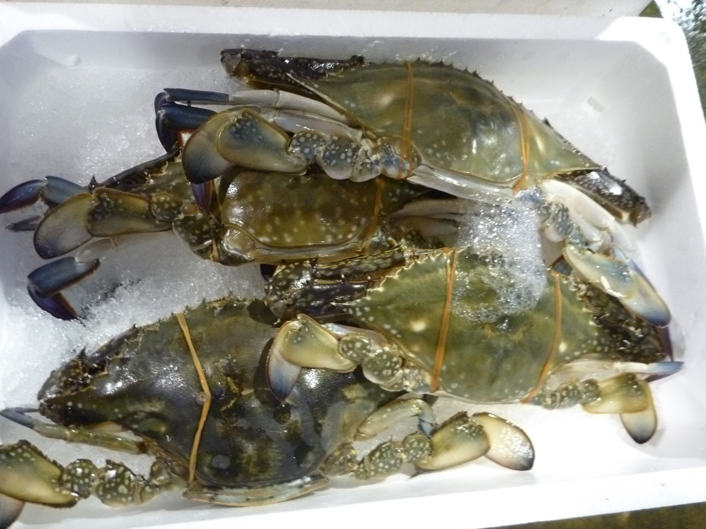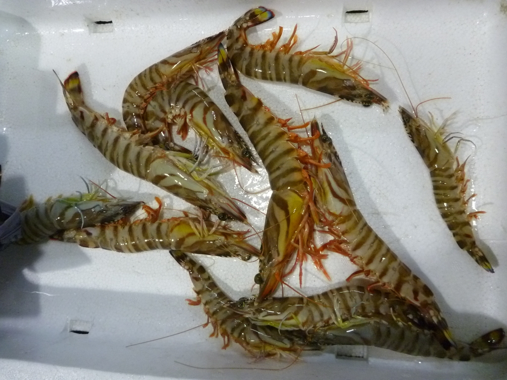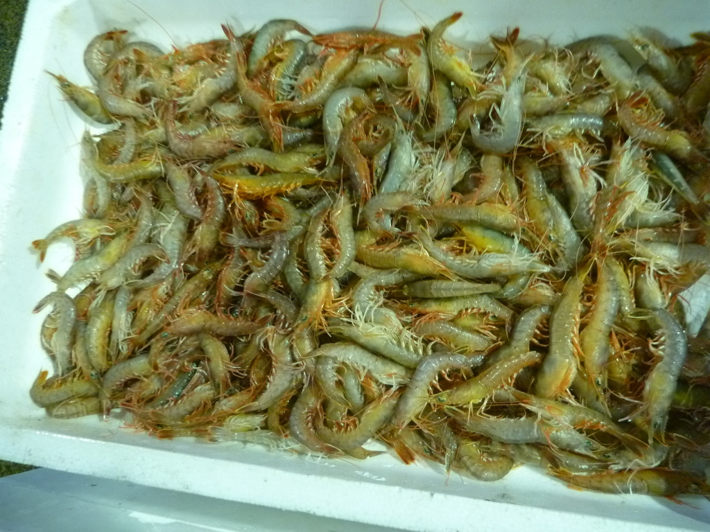 ベイカ、小エビ、クルマエビ、モエビ、ワタリガニ、ニシ貝等です。