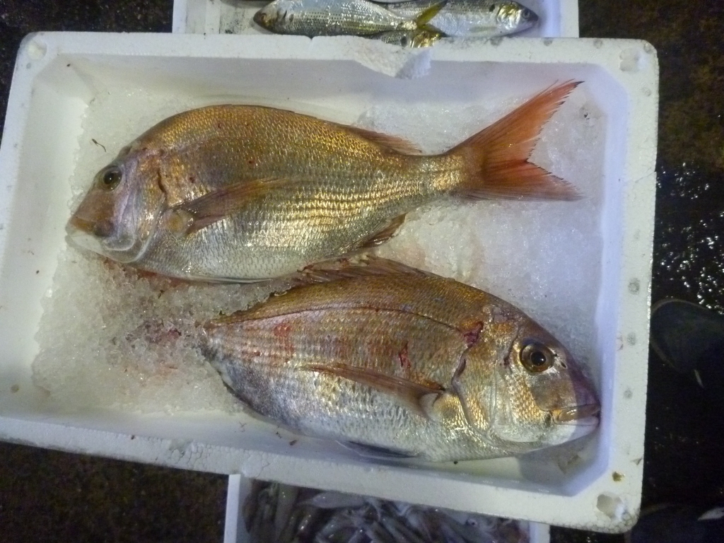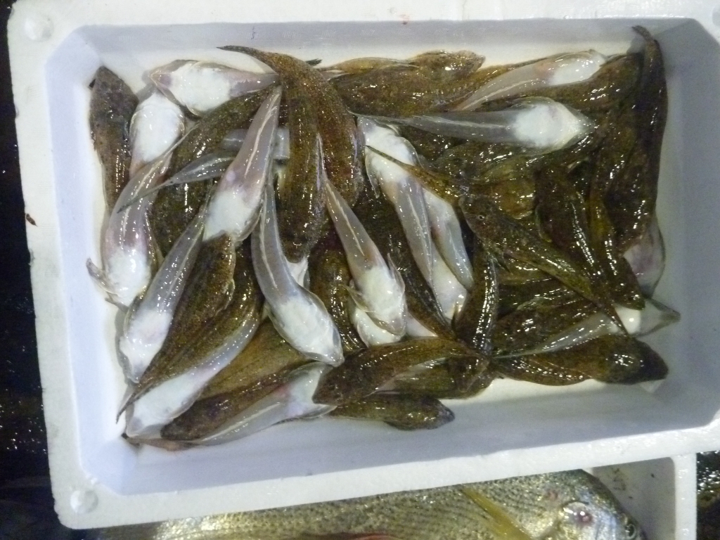 主なものは、マダイ、チヌ、ハネ、ヒラメ、メイタ、ゲタ、コチゴ、オコゼ、