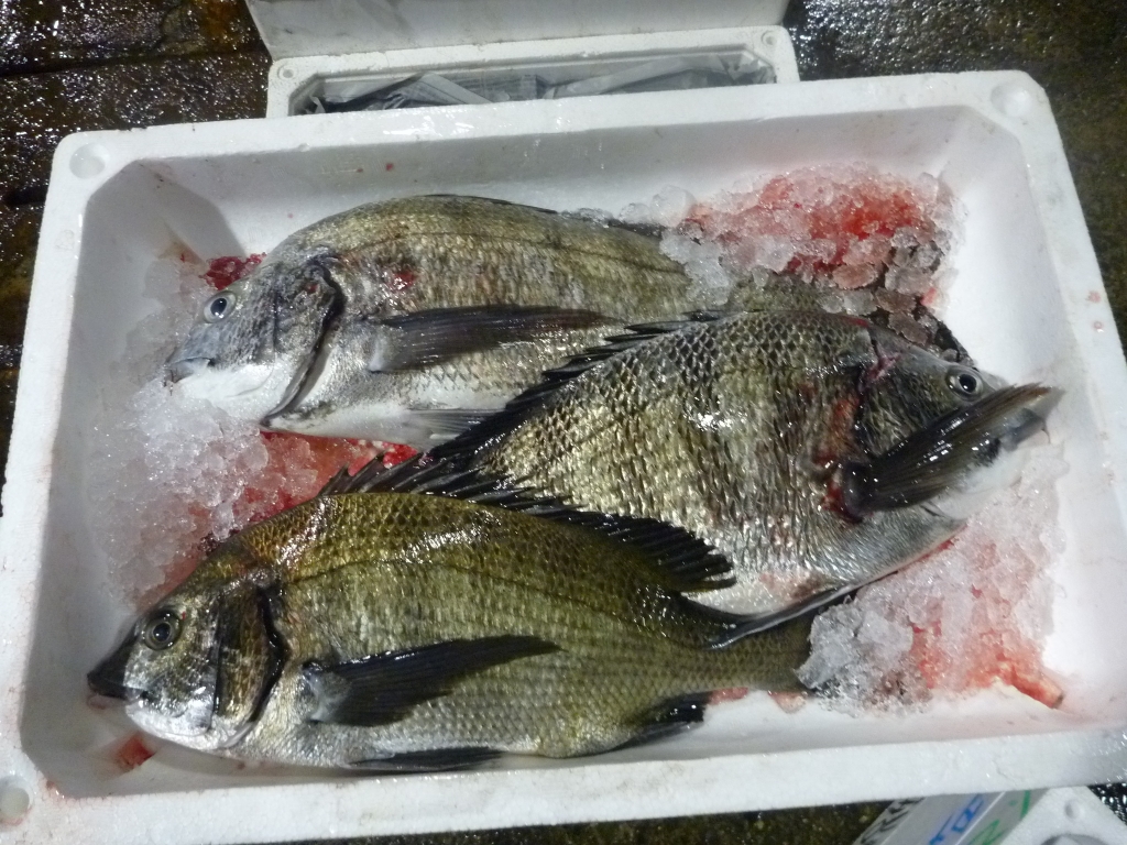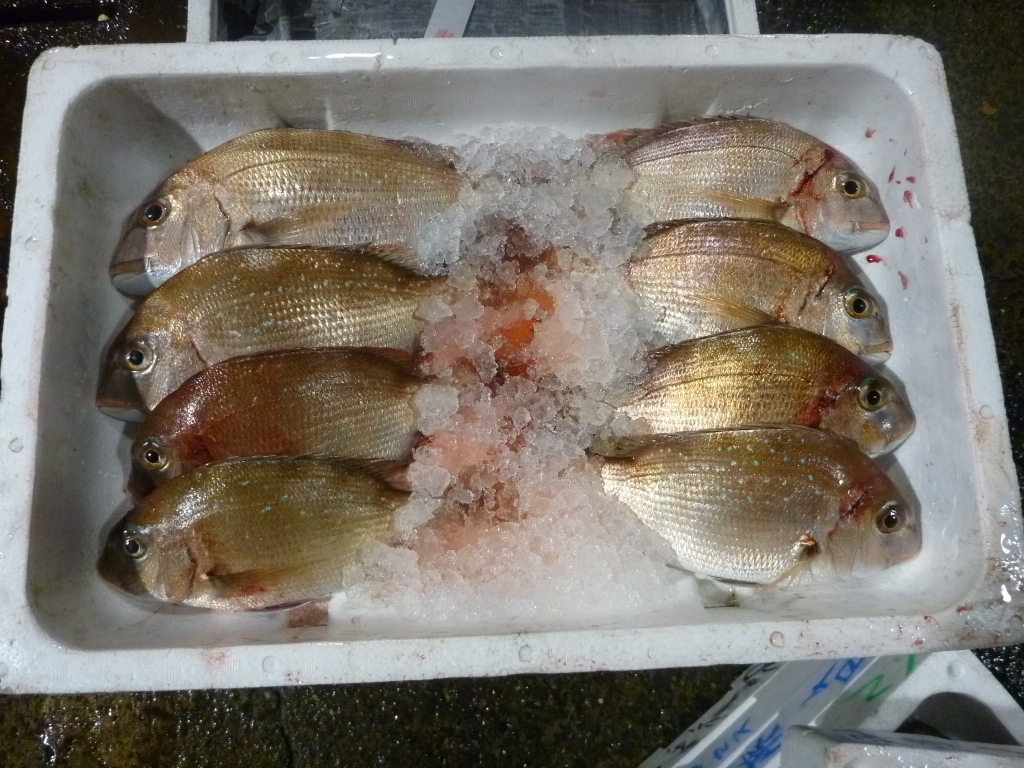 主なものは、マダイ、チヌ、ヒラメ、ハネ、メイタ、ゲタ、