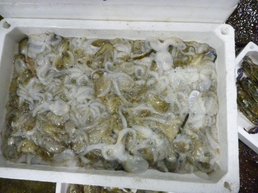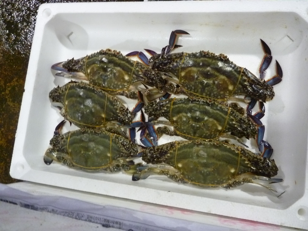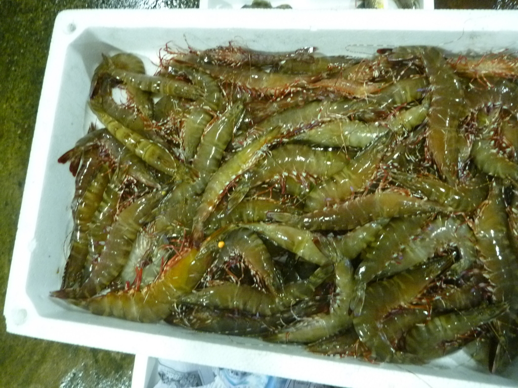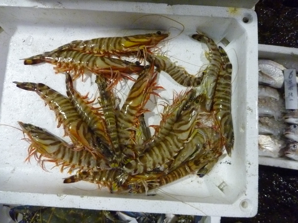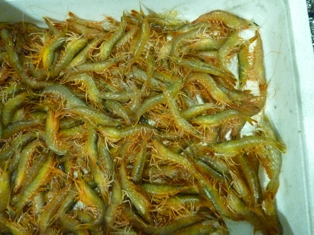 小エビ、モエビ、クルマエビ、ワタリガニ、ニシ貝等です。