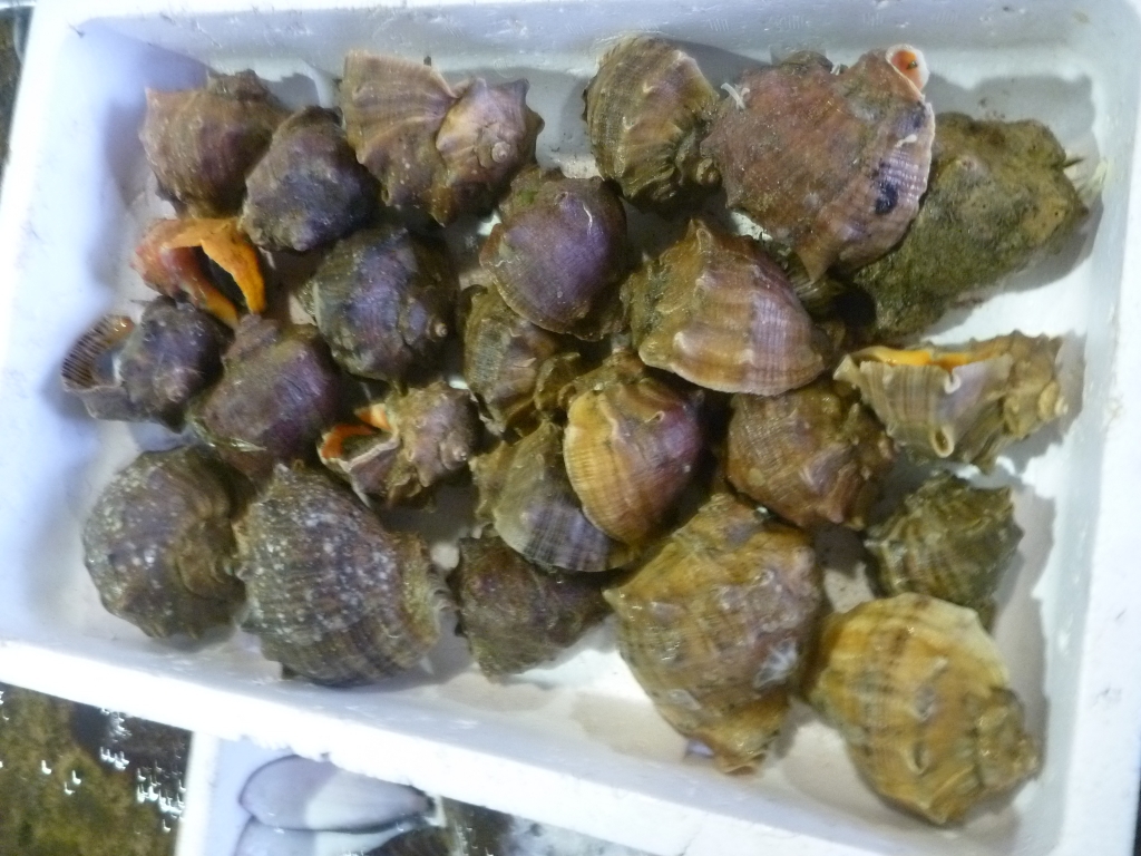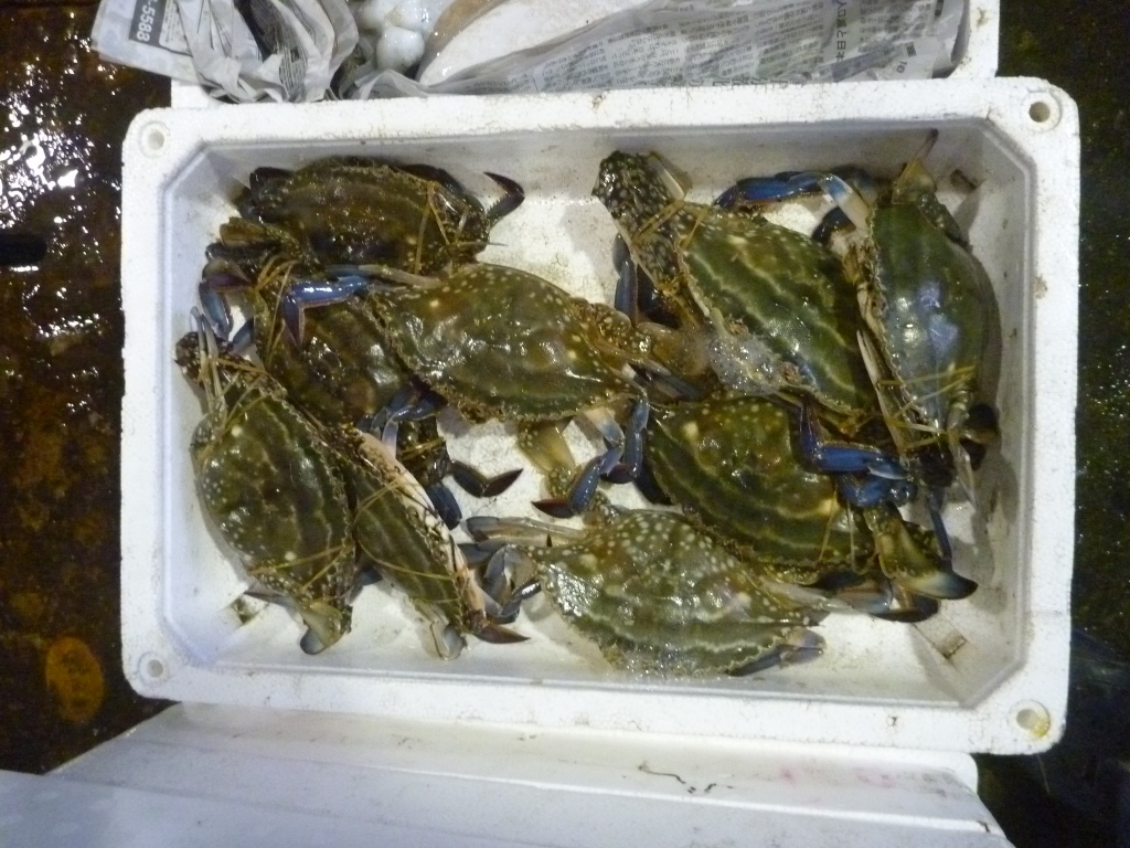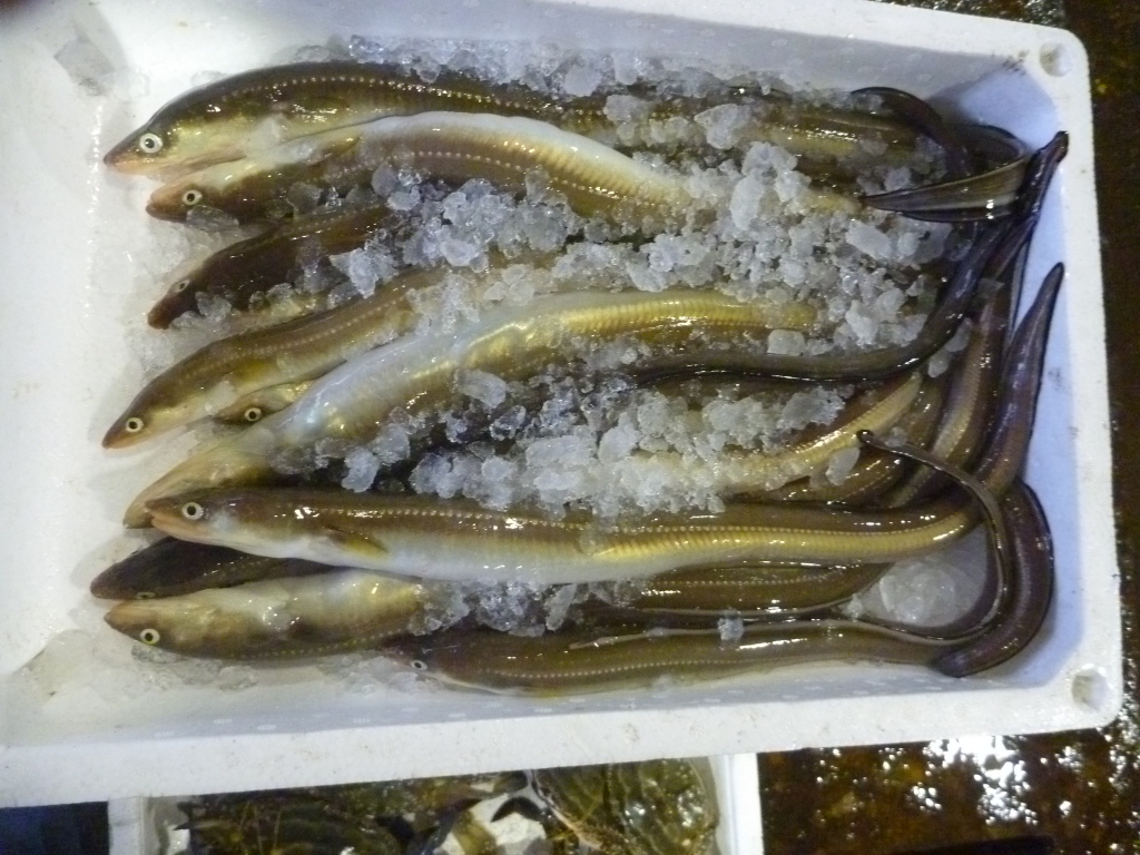 ニベ、アナゴ、マダコ、ハリイカ、ベイカ、小エビ、ワタリガニ、ニシ貝等です。