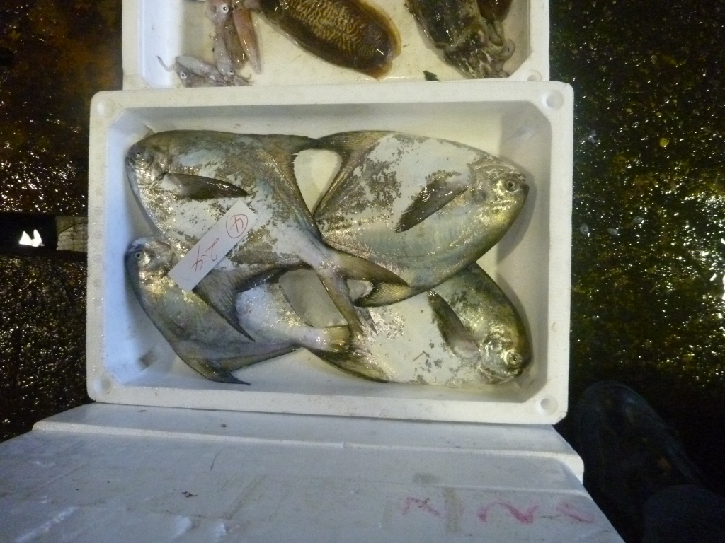 今朝の市場にに入荷している主なものは、マダイ、チヌ、ゲタ、マナガツオ、キス、