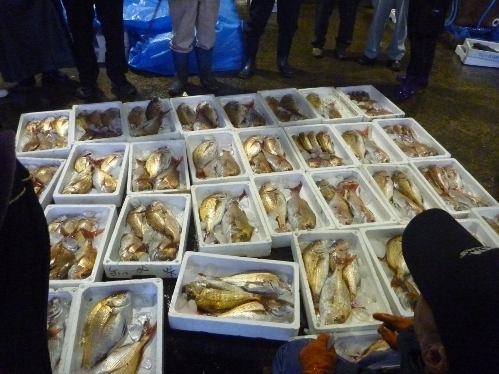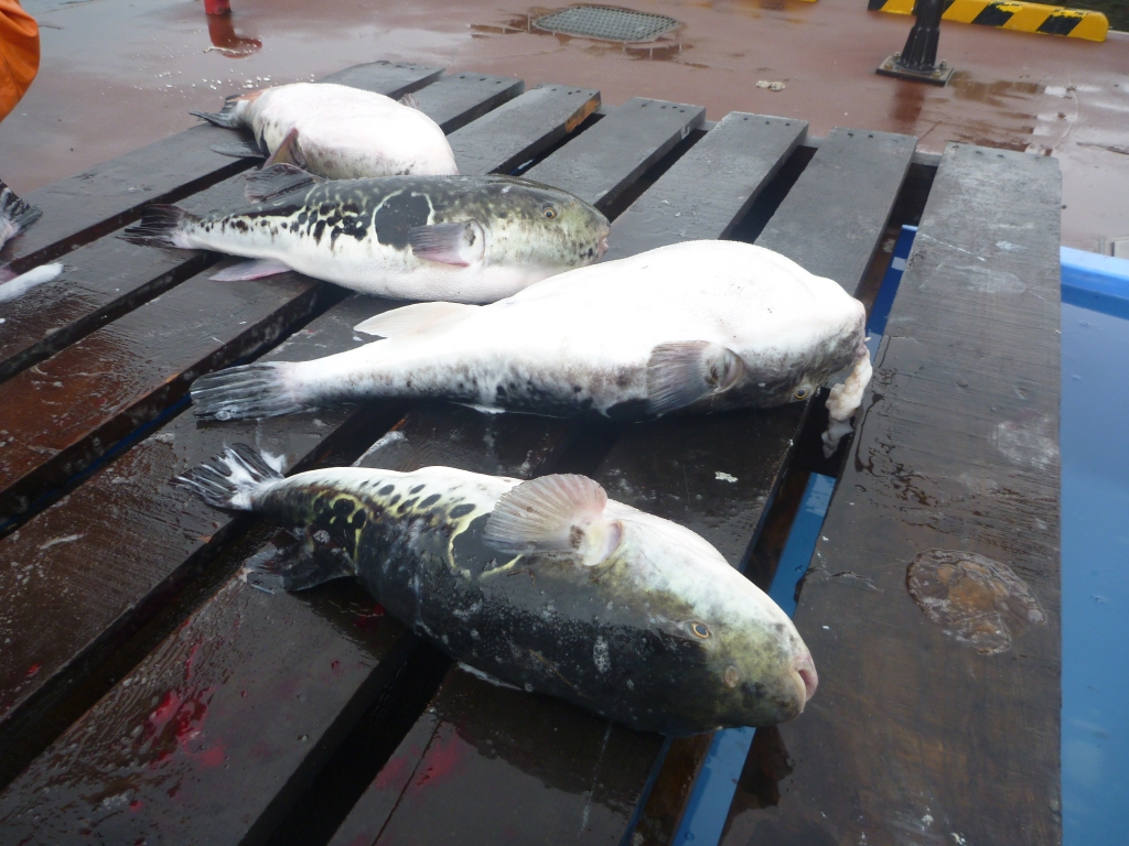 漁獲物はオオブク、ナシフグ、イカ等です。