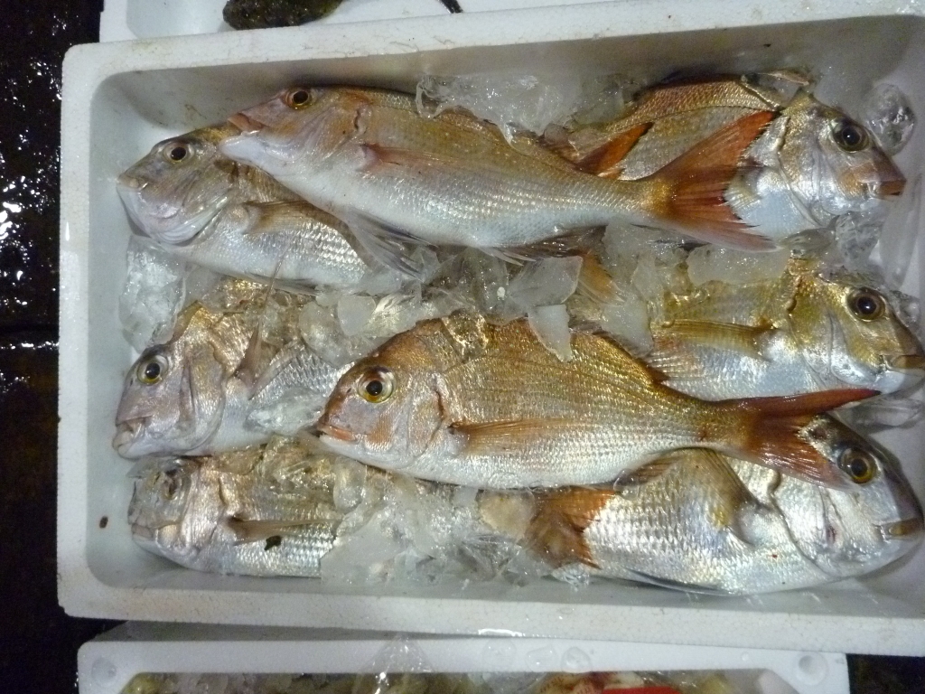 主なものは、マダイ、ヒラメ、チヌ、ハネ、メイタ、ゲタ、オコゼ、