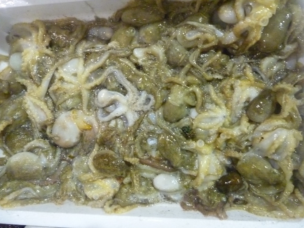 主なものは、マダイ、メイタ、メバル類、キス、チヌ、オコゼ、ヒラメ、アナゴ、イイダコ、
