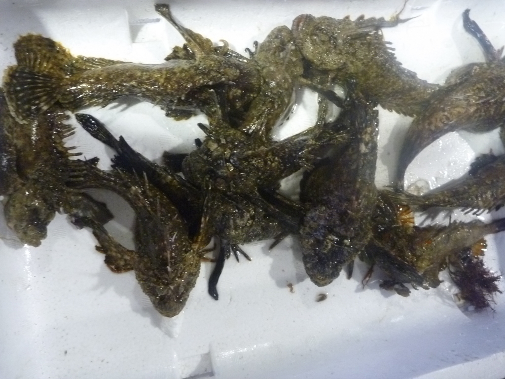 主なものは、マダイ、メイタ、ゲタ、メバル類、オコゼ、フグ類、コノシロ、アナゴ、