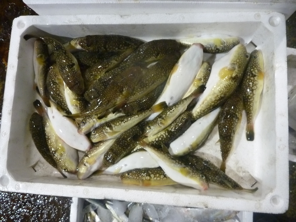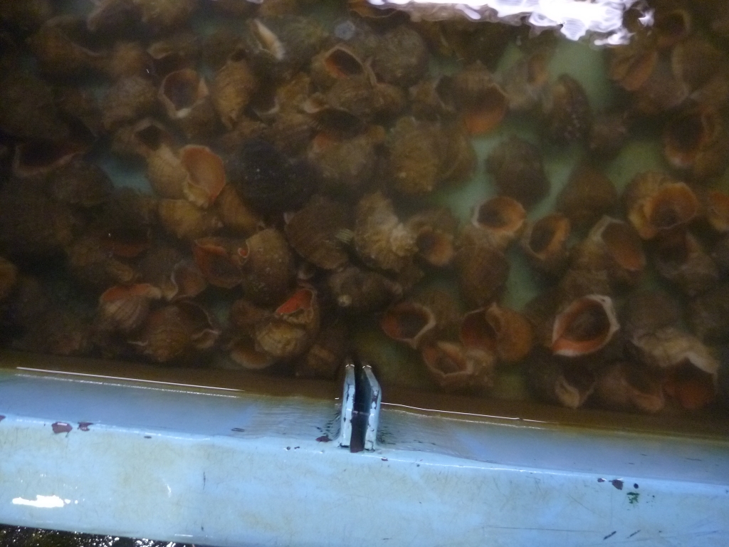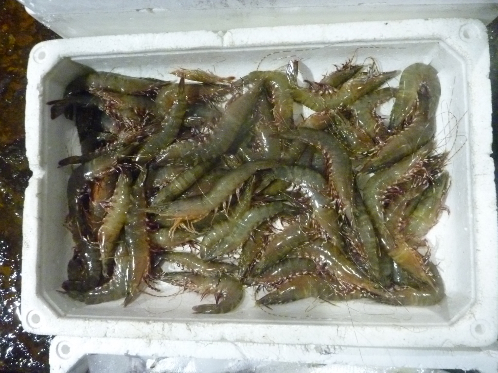 小エビ、クルマエビ、モエビ、ワタリガニ、ニシ貝等です。