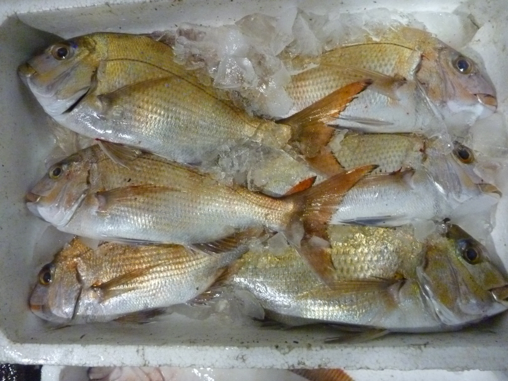主なものは、マダイ、ハネ、ゲタ、メイタ、ヒラメ、メバル類、タチウオ、キス、オコゼ、アナゴ、