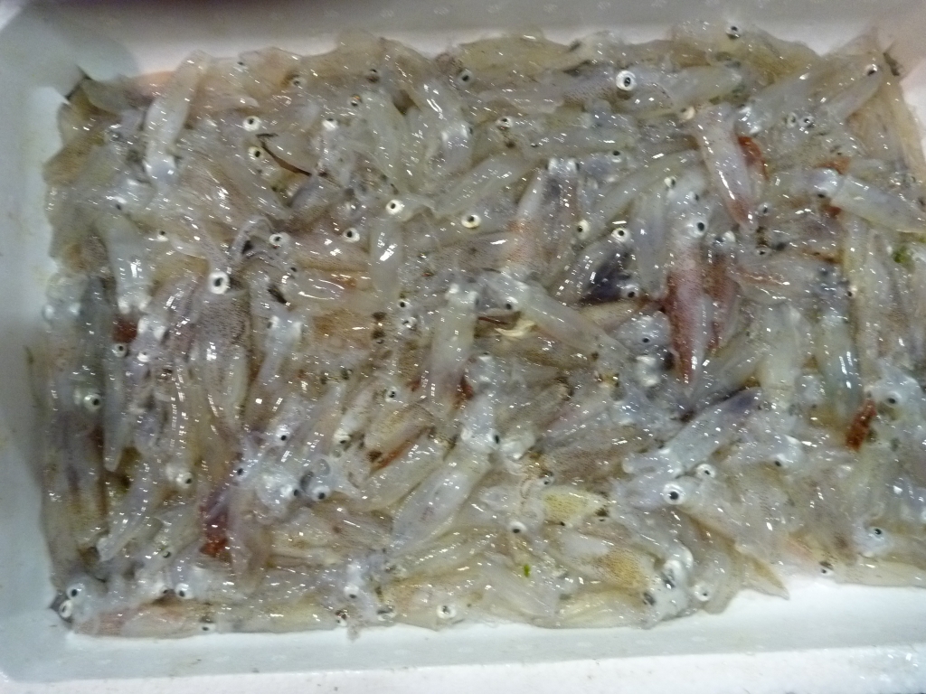マダコ、イイダコ、ベイカ、ハリイカ、小エビ、ワタリガニ、ナマコ、サザエ、ニシ貝等です。