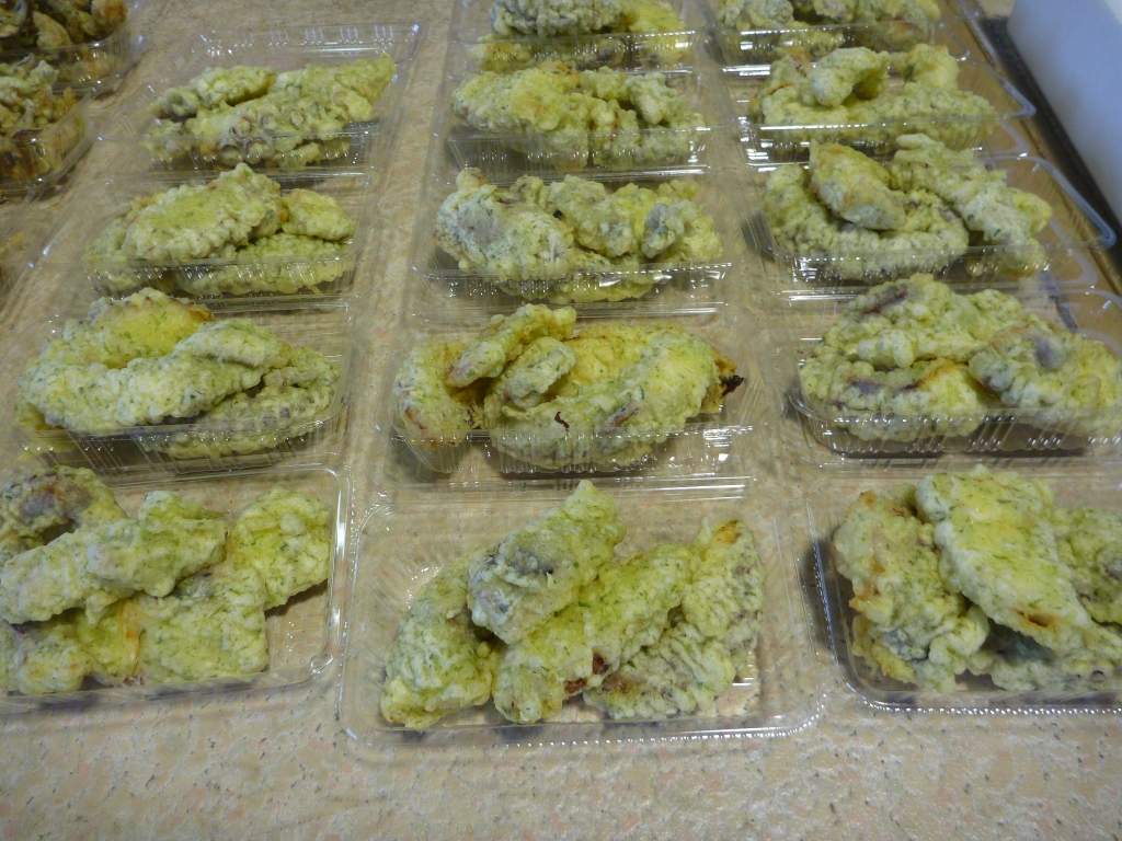 たこ飯、エビ・タコ。フグ等のてんぷらです。