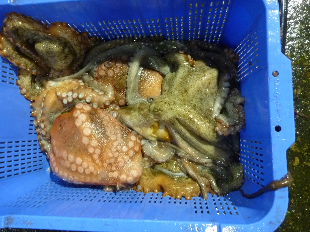 主なものはマダコ、小エビを中心にマダイ、ハネ、チヌ、ゲタ、メイタ、ヒラメ、