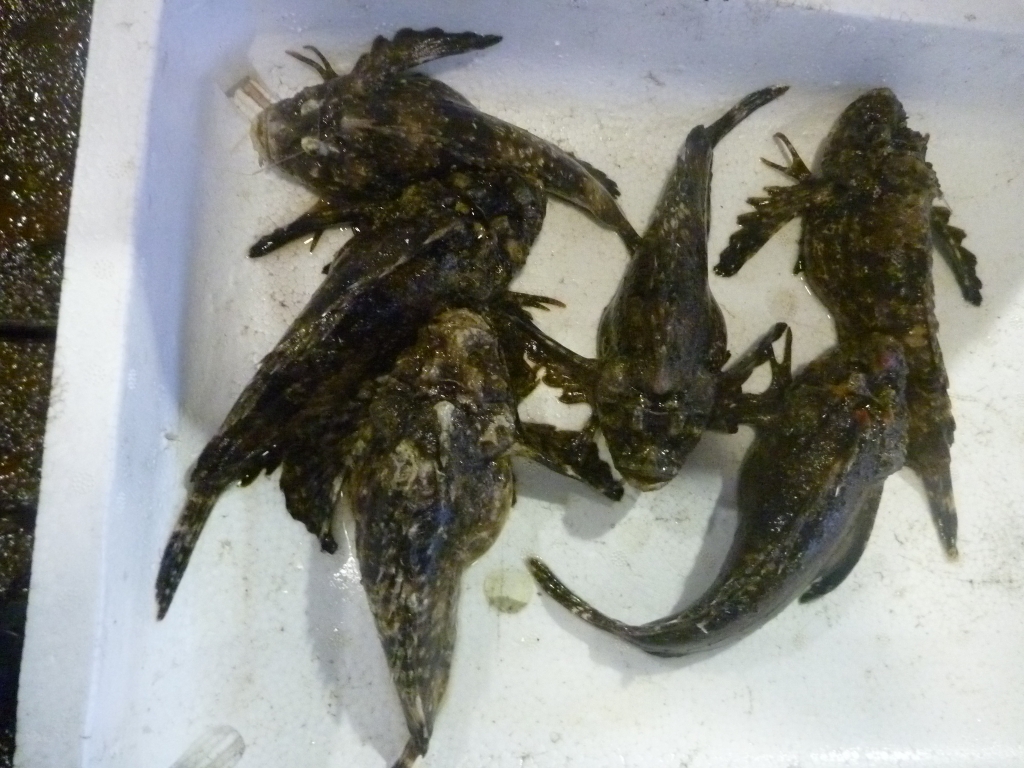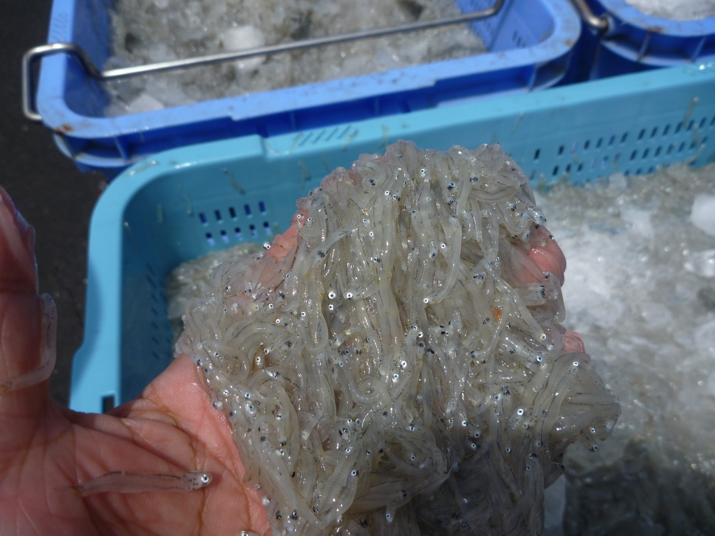 コノシロ、アナゴ、マダコ、ハリイカ、ベイカ、小エビ、ワタリガニ、ニシ貝等です。