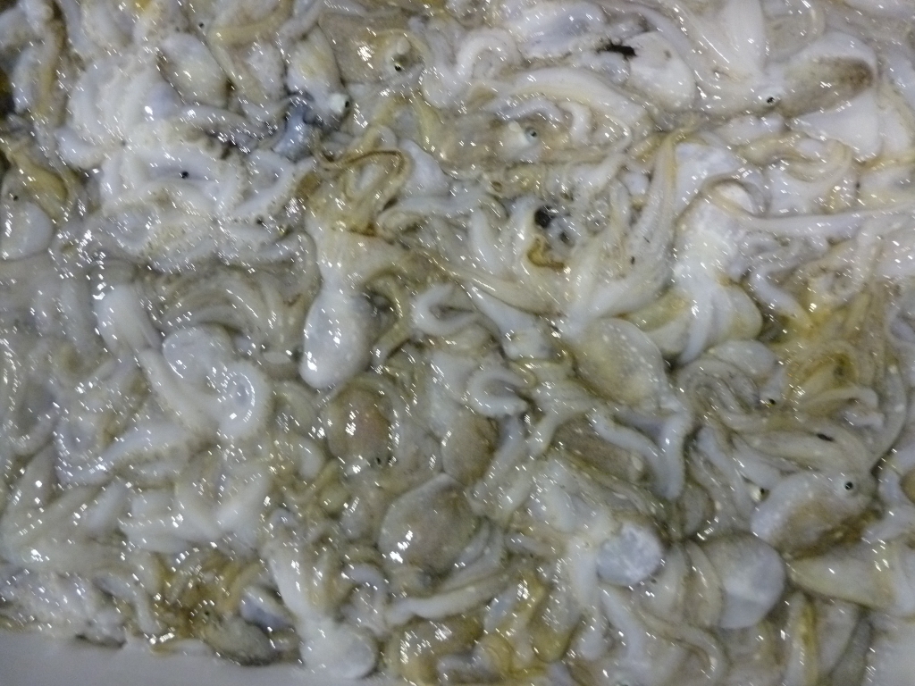 イイダコ、コウイカ、ミズイカ、ベイカ、クルマエビ、モエビ、ワタリガニ、ニシ貝等です。