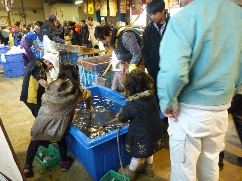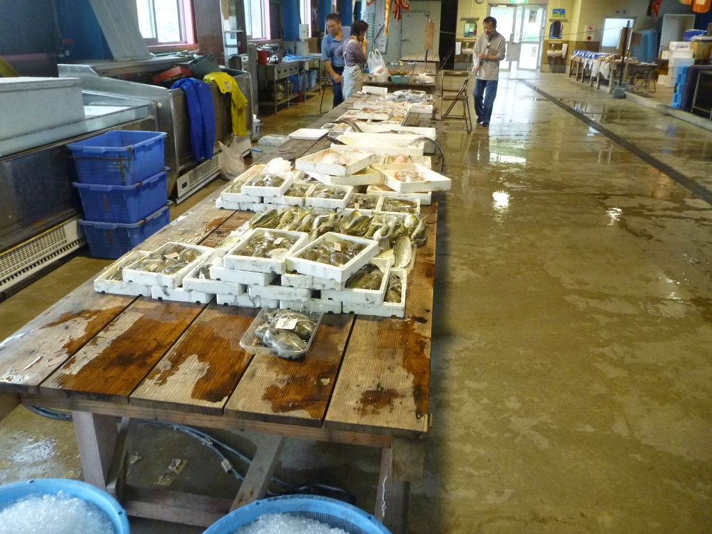当番の漁業者は、夜は風が出そうなので、昼漁に出ています。