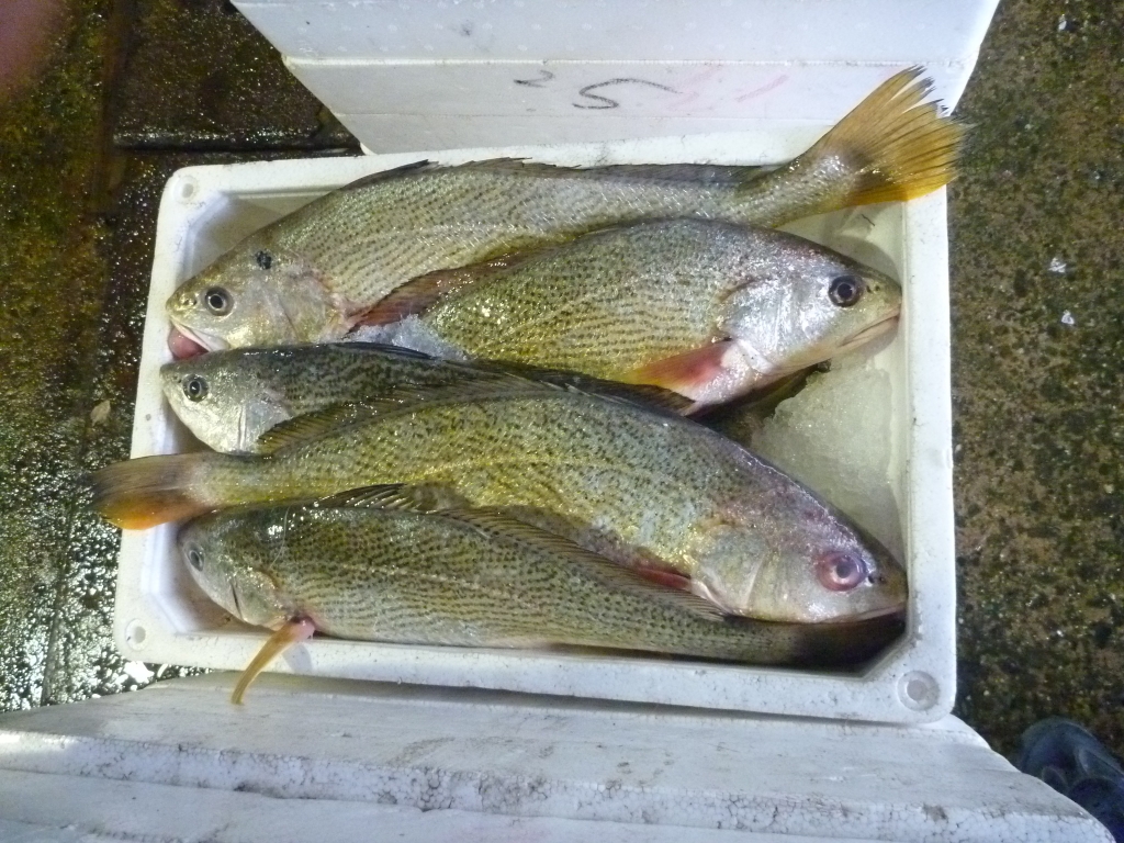 主なものは、マダイ、チヌ、ヒラメ、メイタ、ゲタ、メバル類、キス、ベラ、オコゼ、マナガツオ、