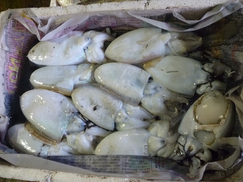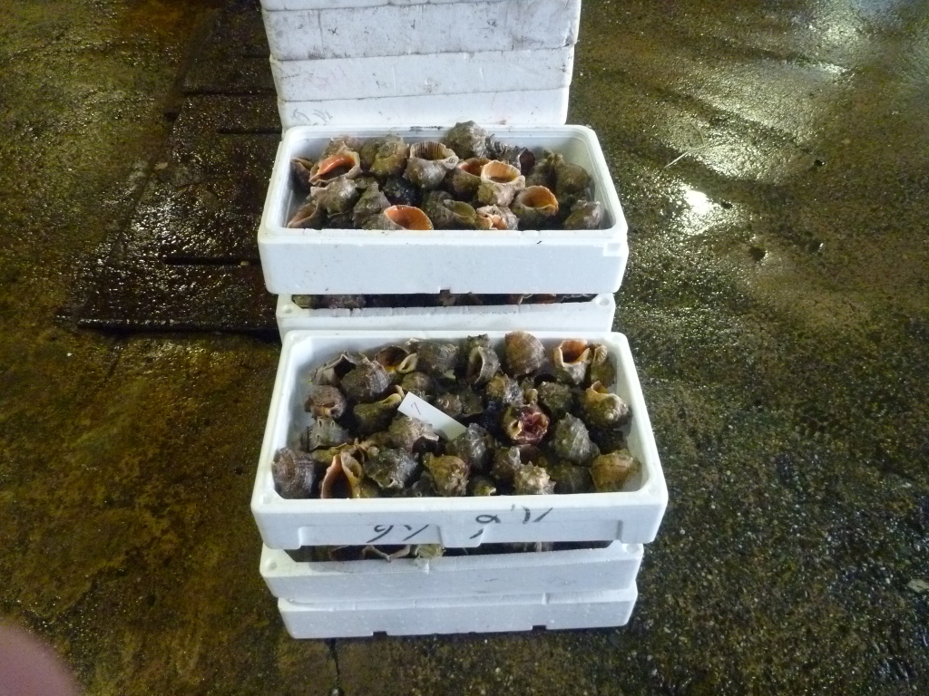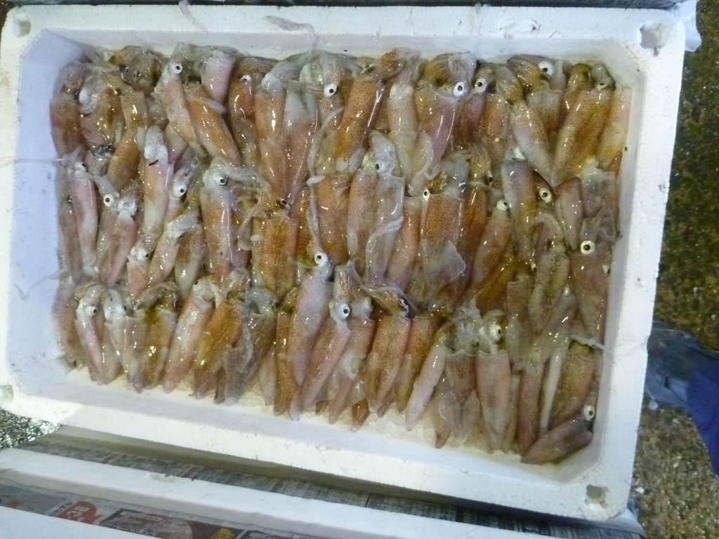 ニベ、アナゴ、マダコ、ハリイカ、ミズイカ、ベイカ、小エビ、ワタリガニ、ニシ貝です。