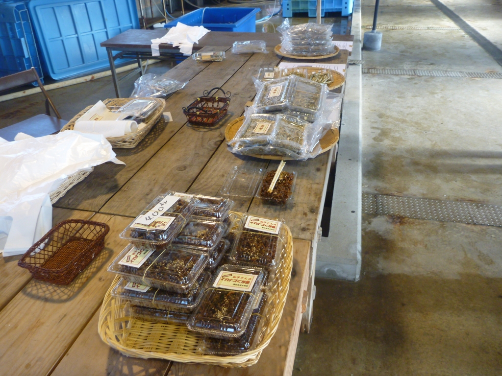 イカナゴのくぎ煮(女性部製品)、サワラの燻製品等です。