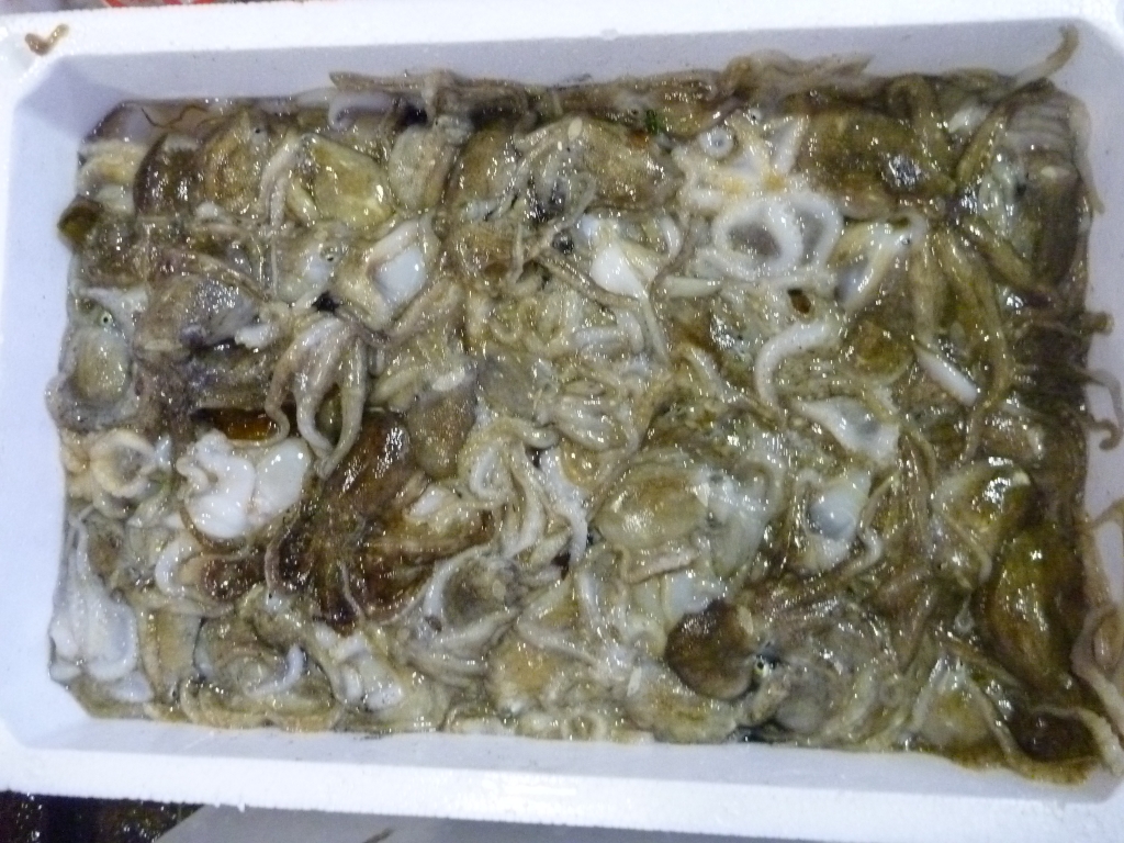 朝の網の漁獲物は、食用の加工向けにすべて仕向けられましたが、昼網のものは、