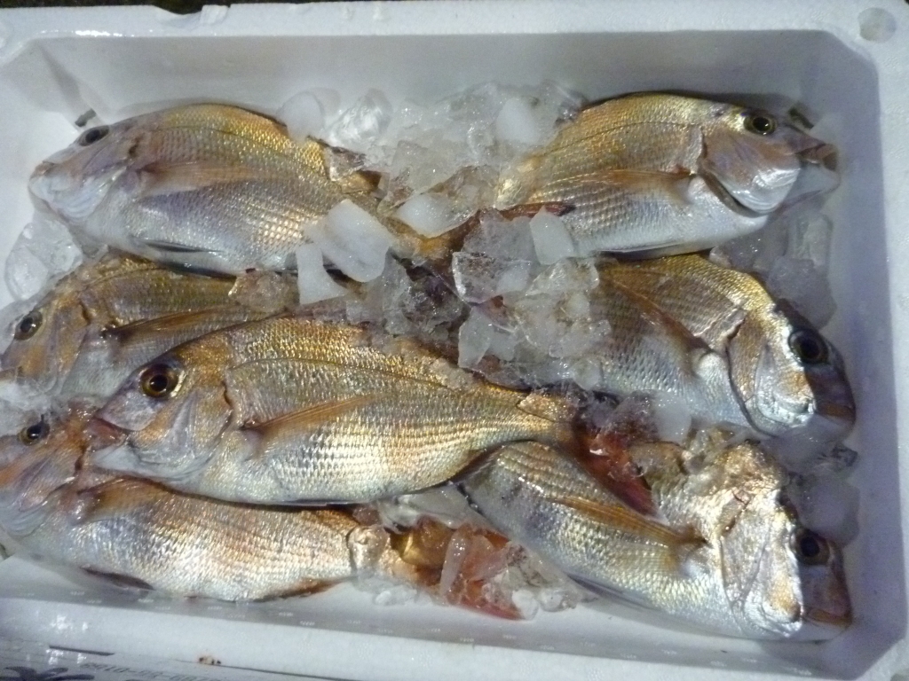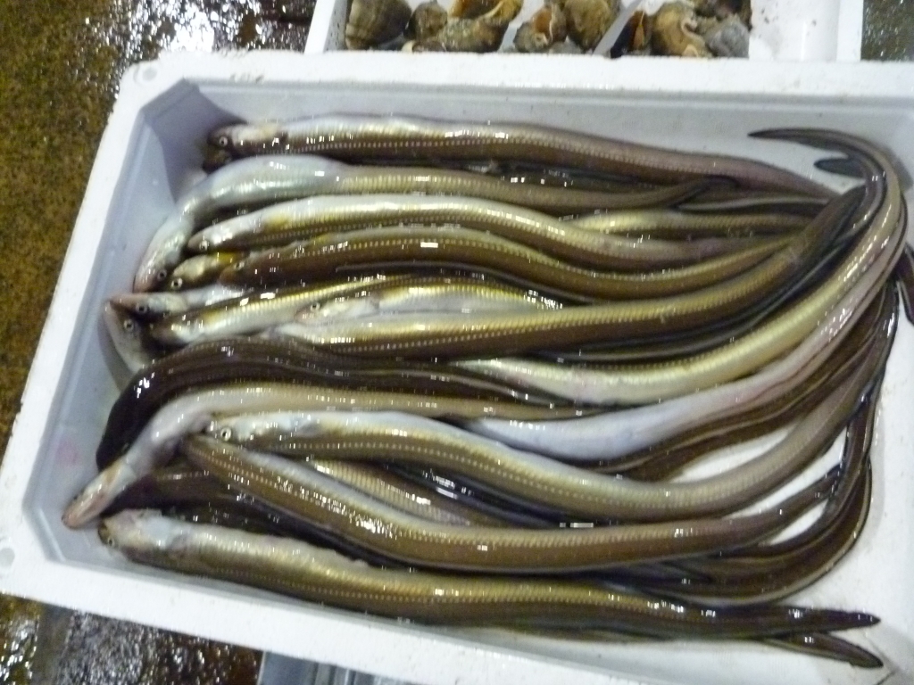 主なものは、マダイ、メイタ、ハネ、メバル類、キス、ゲタ、ヒラメ、ニベ、アナゴ、