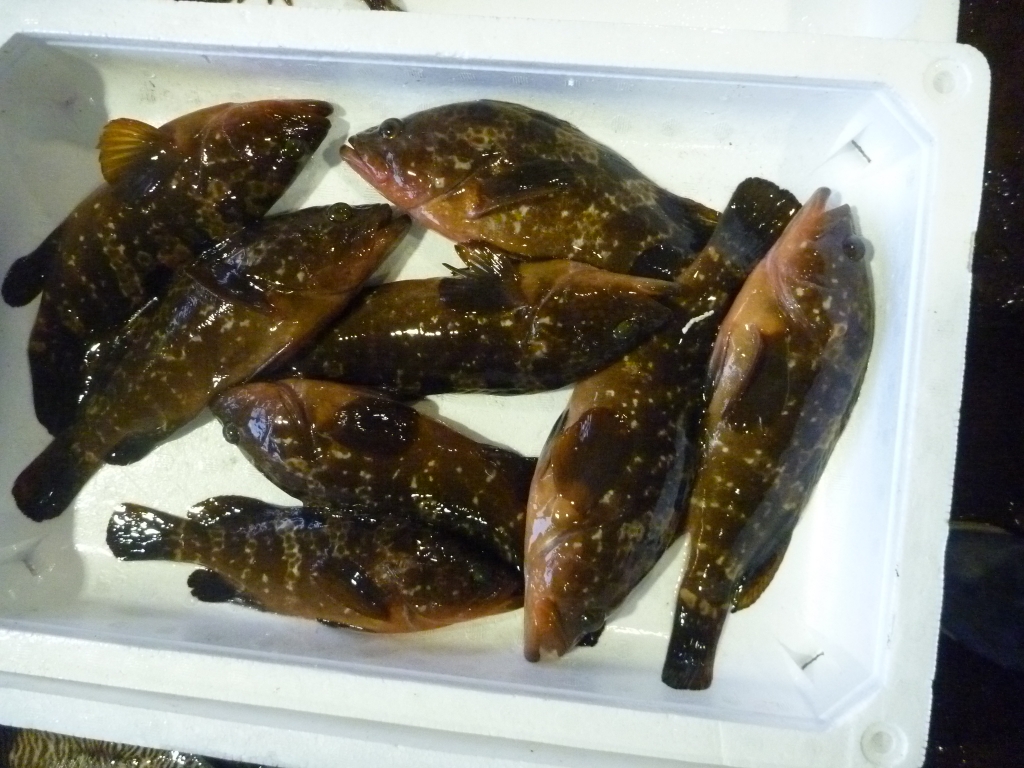 主なものは、マダイ、チヌ、ヒラメ、ハネ、メイタ、ゲタ、メバル類、オコゼ、アコウ、キス、