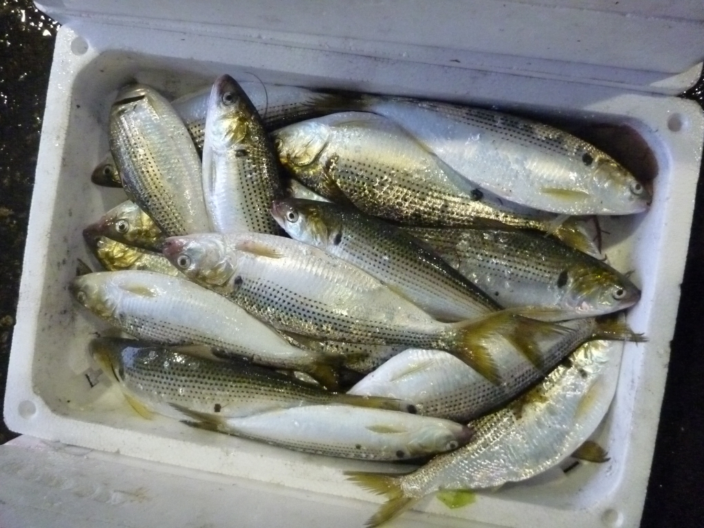 コノシロ、ボラ、コチゴ、ニベ、アナゴ、ハリイカ、ベイカ、マダコ、イイダコ、小エビ、クルマエビ、ニシ貝等です。