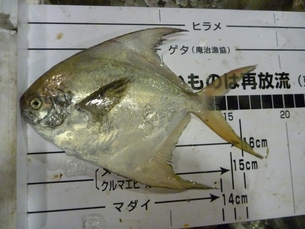 9月下旬ころから全長15~18㎝位の今年生まれのマナガツオが、市場に顔を出しています。