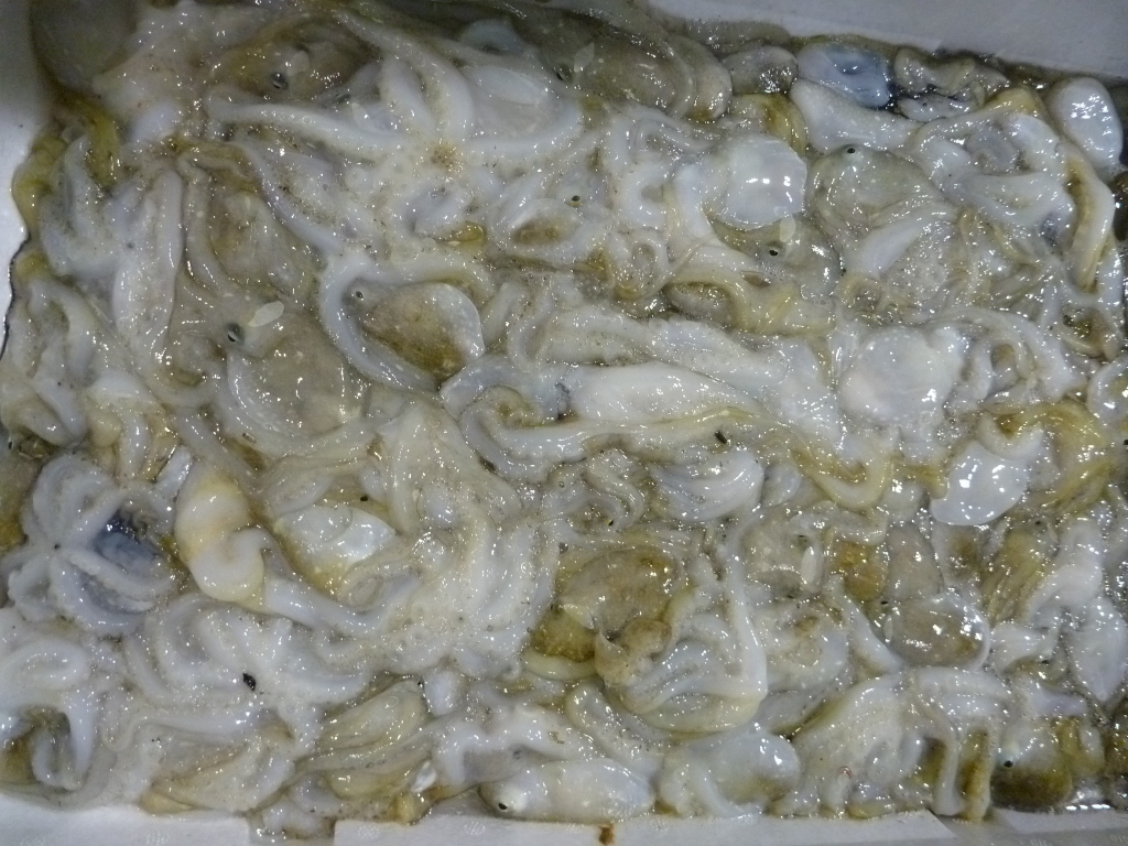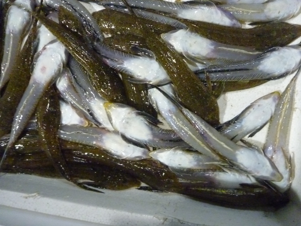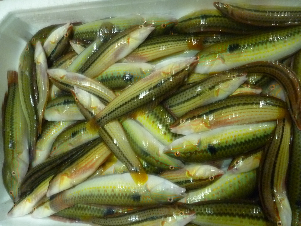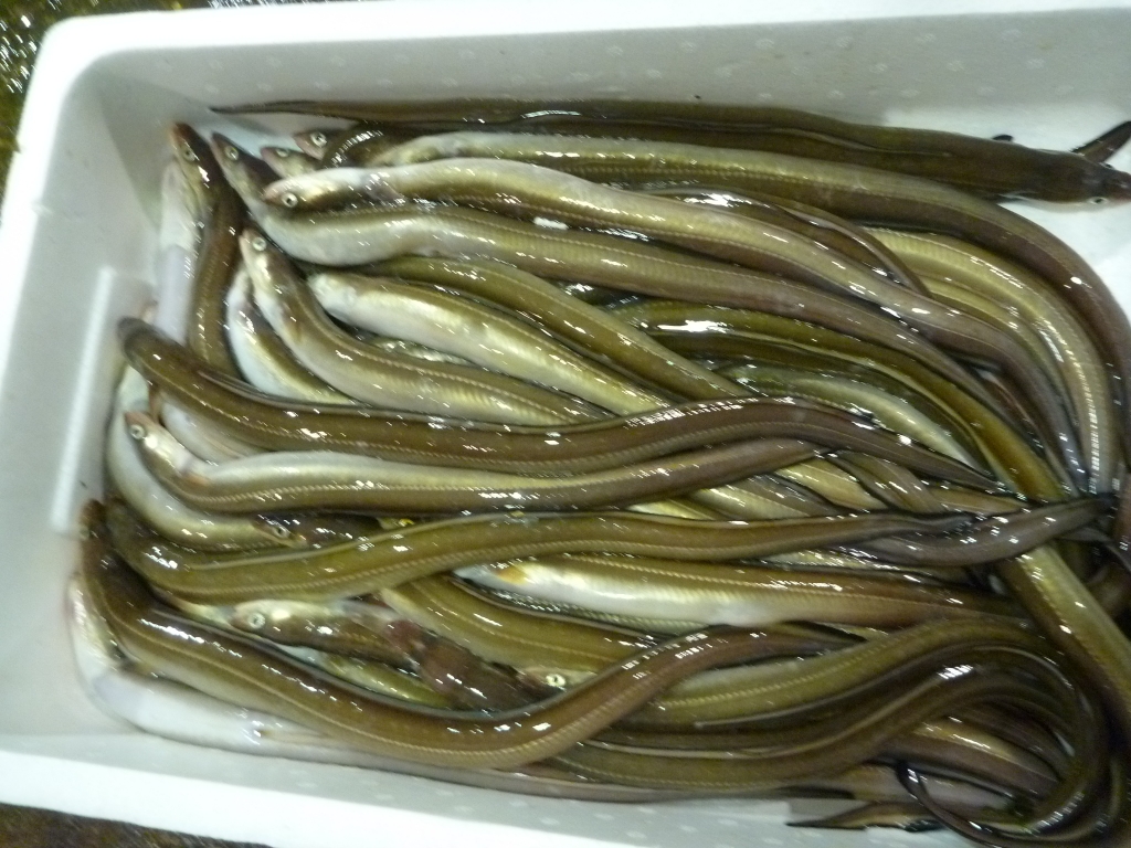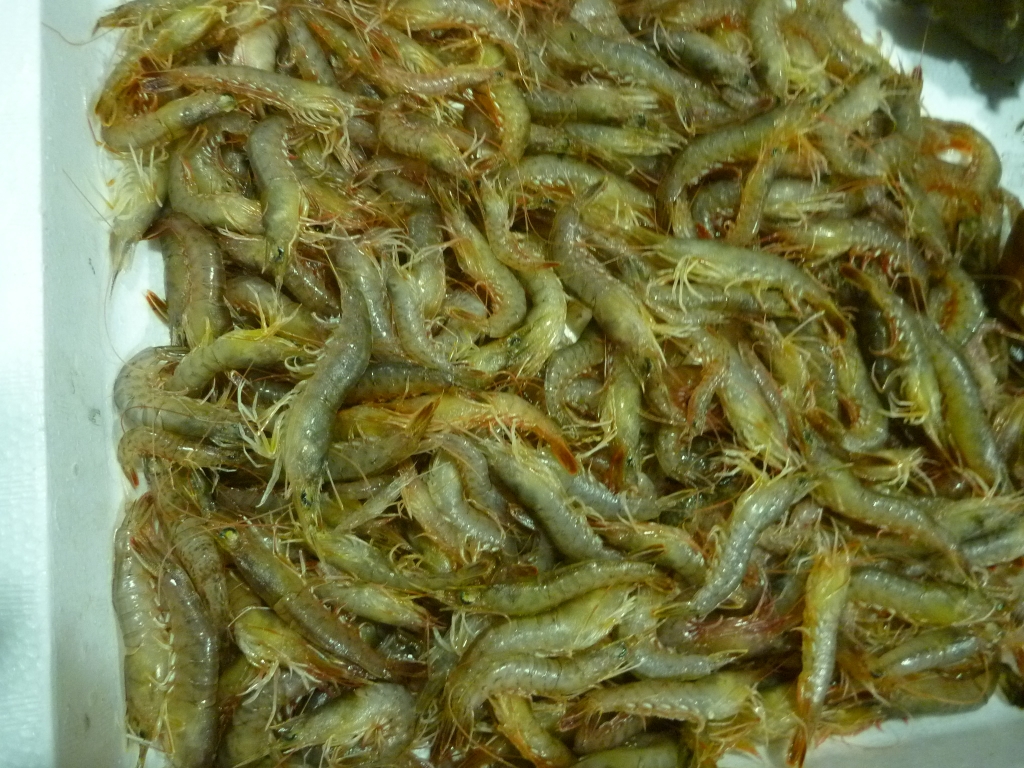 コノシロ、アカエイ、アナゴ、クルマエビ、モエビ、ガザエビ、ワタリガニ、イイダコ、ベイカ、