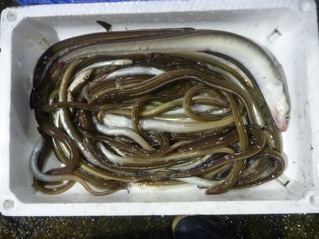 主なものは、メイタ、ハネ、チヌ、メバル類、キス、オコゼ、ヒラメ、アナゴ、