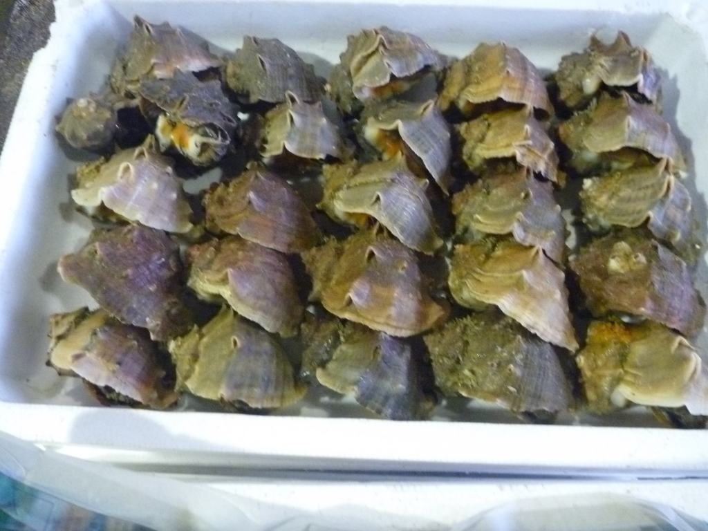 イイダコ、ベイカ、小エビ、ニシ貝、ナマコ等です。