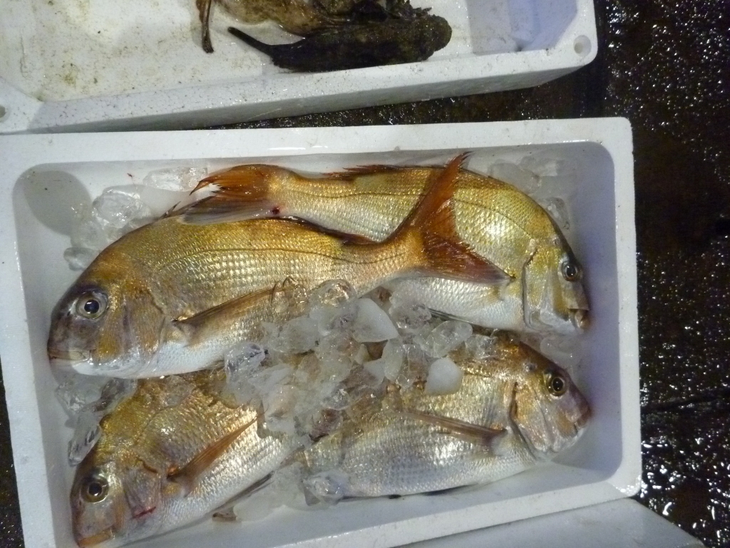 主なものは、マダイ、チヌ、ハネ、ヒラメ、メイタ、ゲタ、オコゼ、メバル類、キス、ナゴヤフグ、