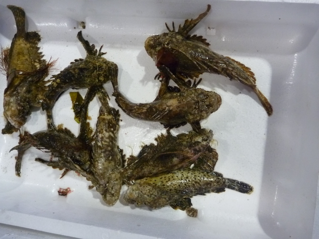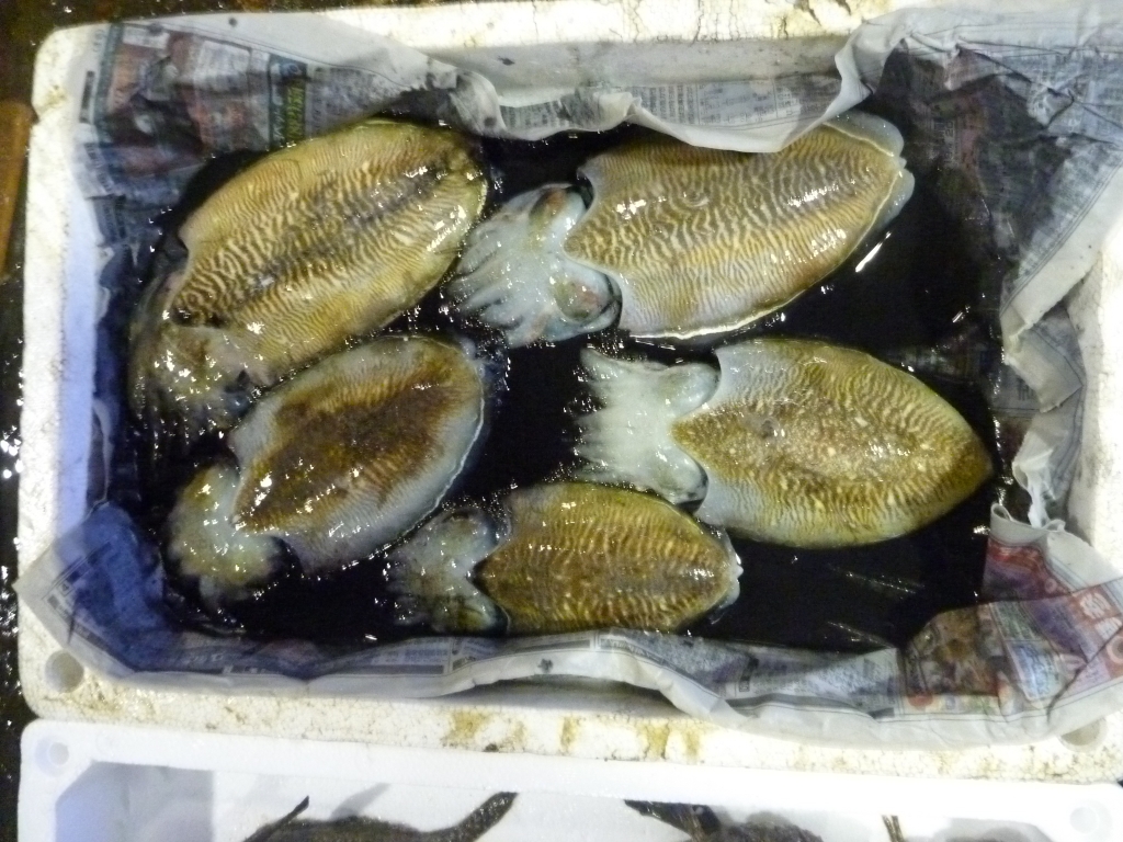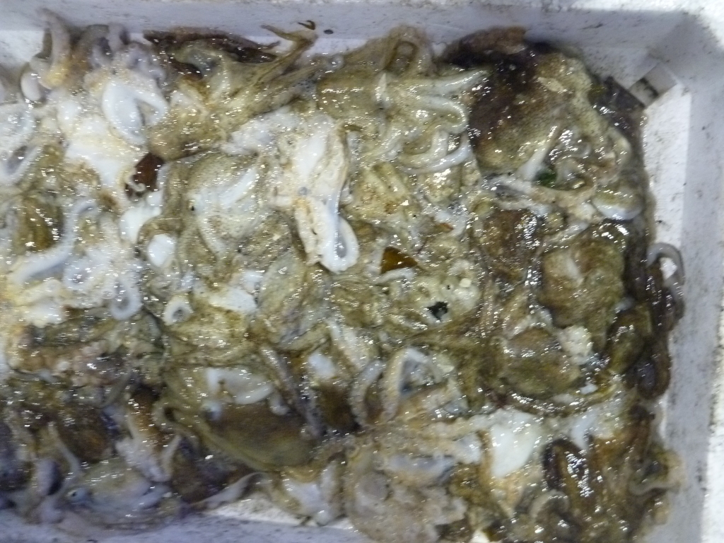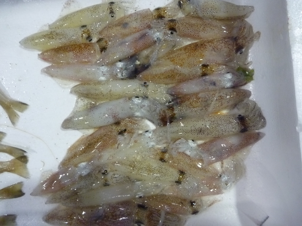 ニベ、アナゴ、イイダコ、マダコ、テナガダコ、ベイカ、ハリイカ、小エビ、タチガイ、ニシ貝等です。