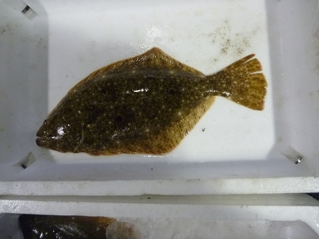 1kgを超えるものもいますが、多いのは全長30~35cm程度の小ヒラメです。