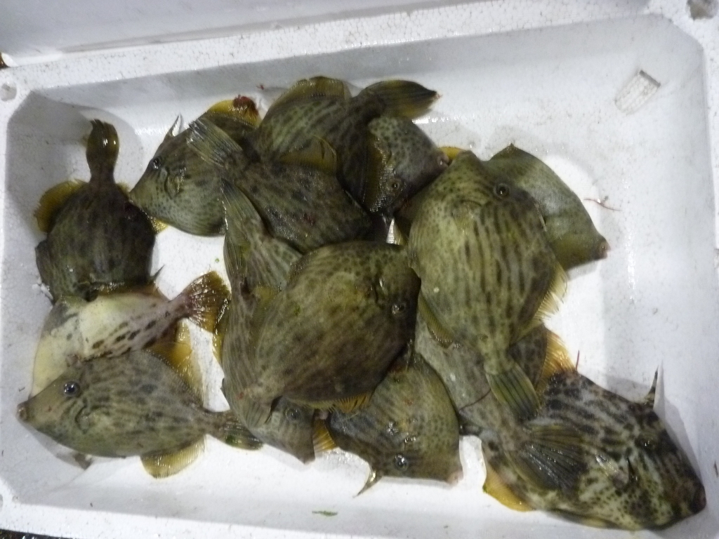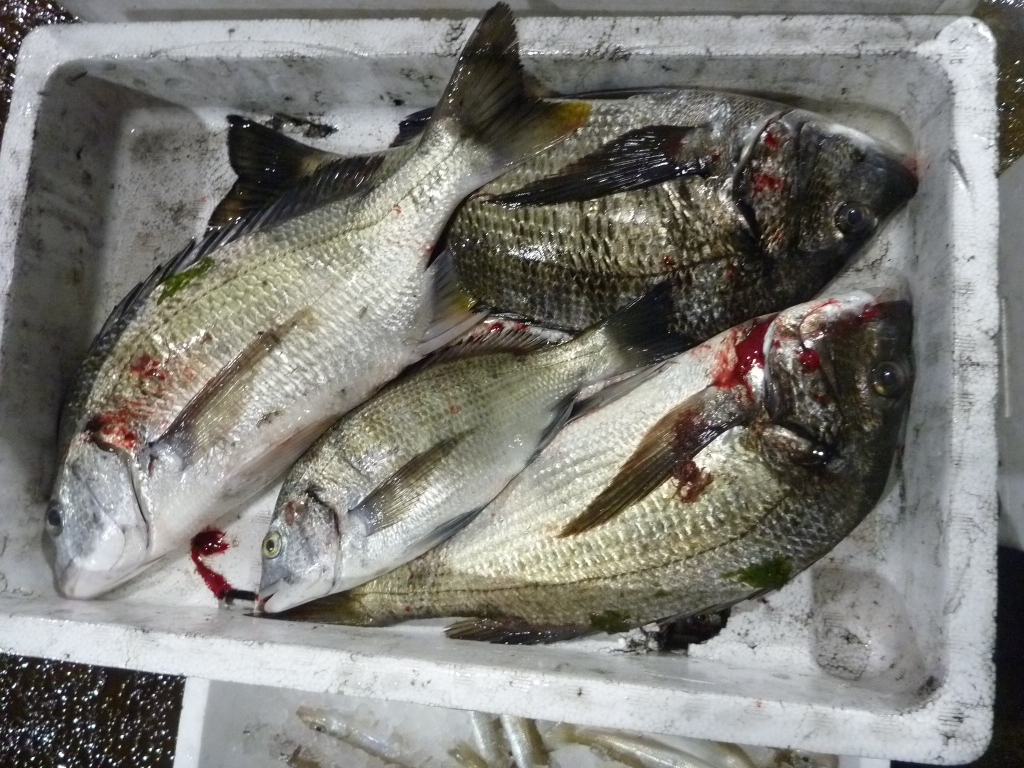主なものは、マダイ、チヌ、ヒラメ、ハネ、マルハギ、ゲタ、メイタ、メバル類、タナゴ、