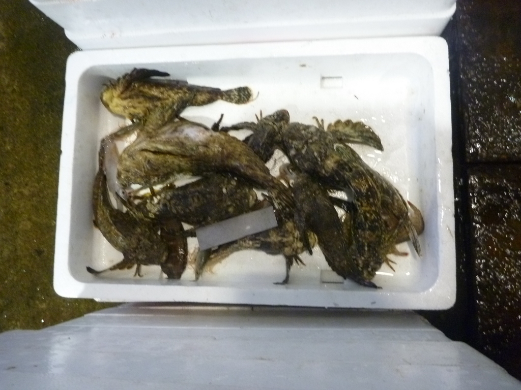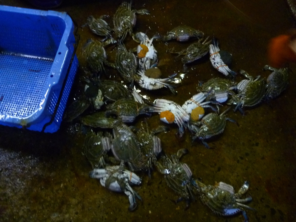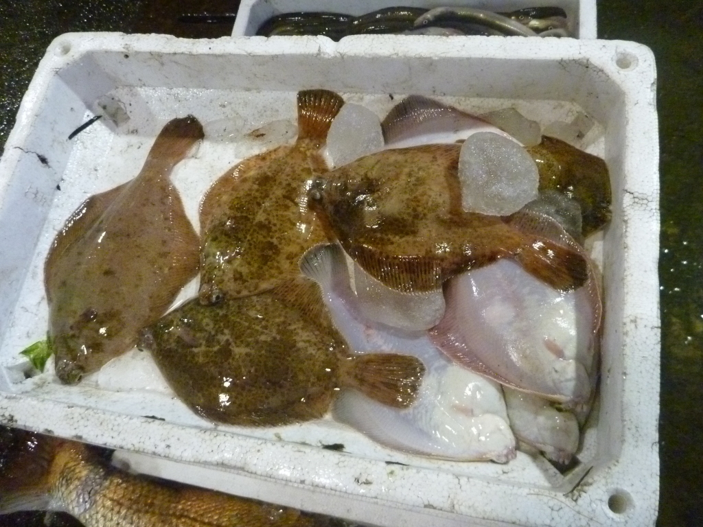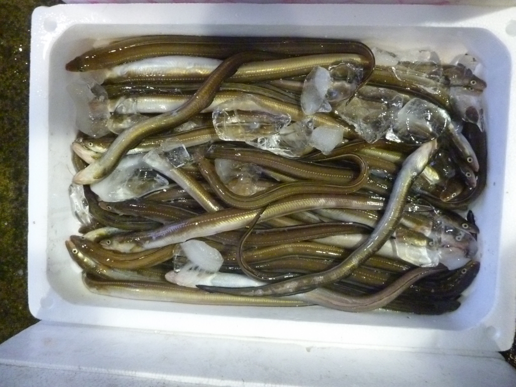 ニベ、アナゴ、マダコ、ハリイカ、ベイカ、小エビ、ワタリガニ、ニシ貝等です。